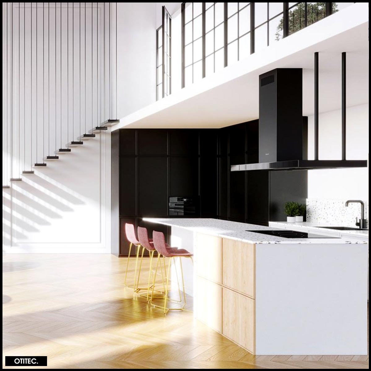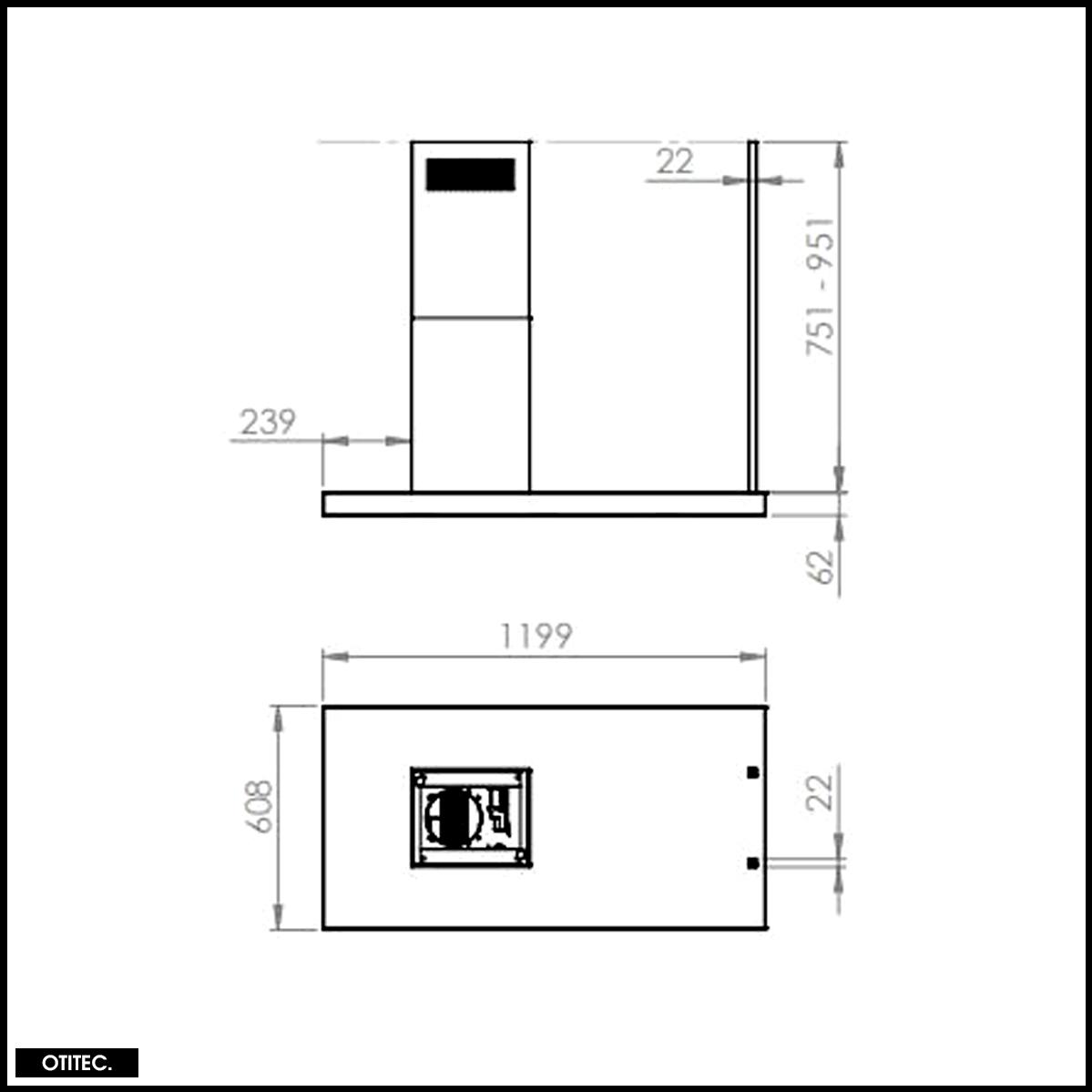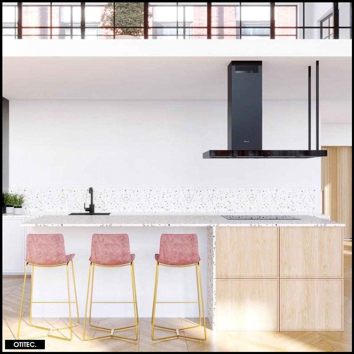 Hotte Îlot Aspirante Silencieuse - 120 cm - 725 m3/h - NOELIA - Noir
