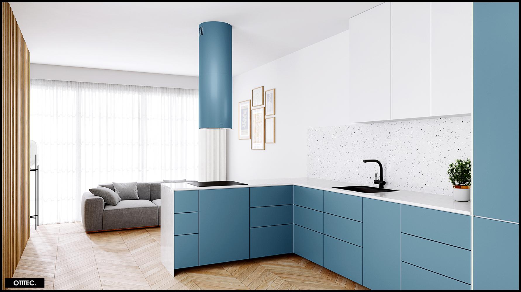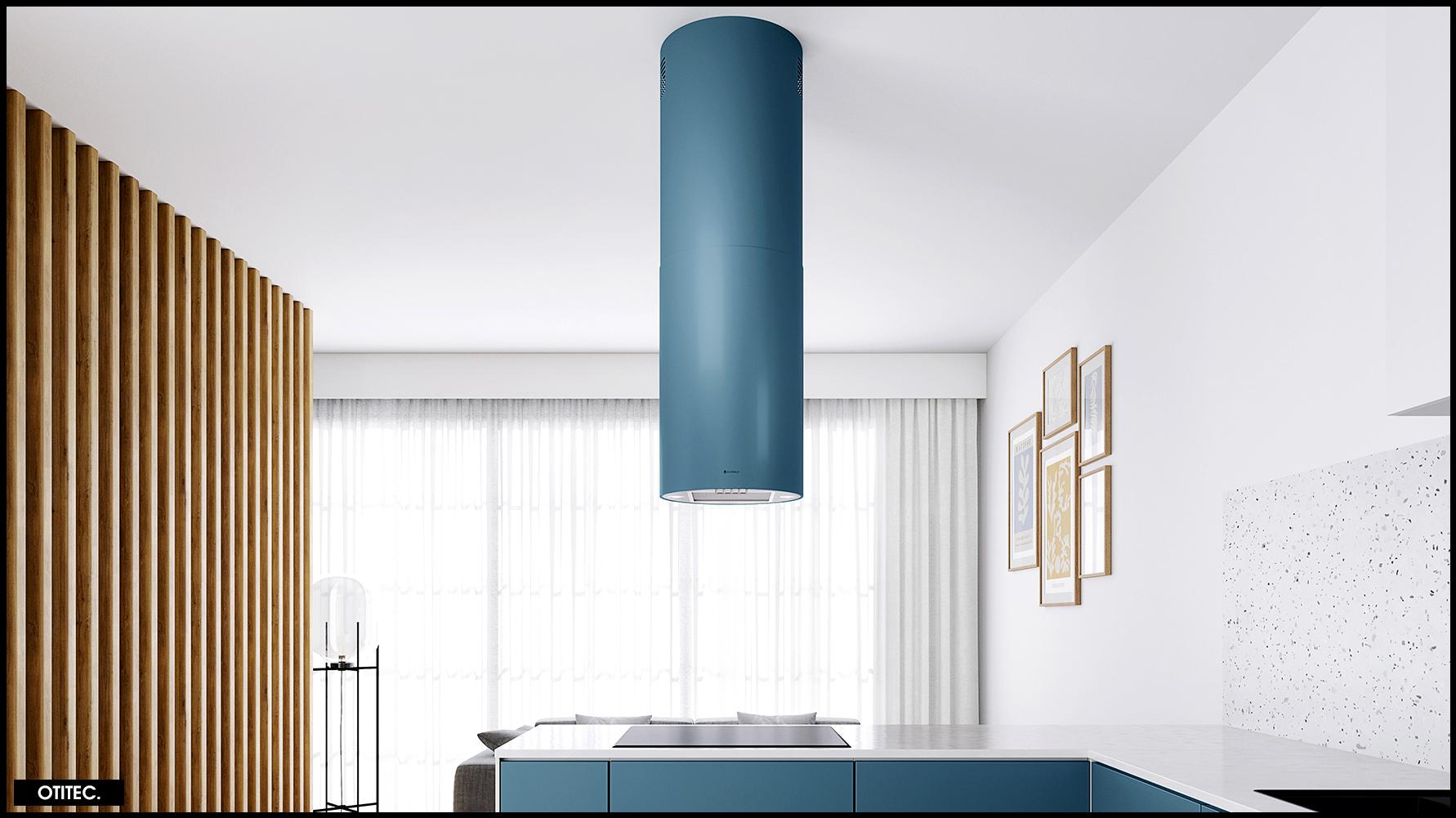 Hotte Îlot Aspirante Silencieuse - 39 cm - 570 m3/h - LOBELIO - Bleu Océan