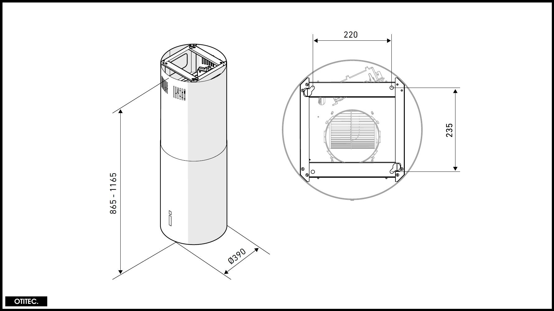 Hotte Îlot Aspirante Silencieuse - 39 cm - 675 m3/h - HEWENO - Doré Mat