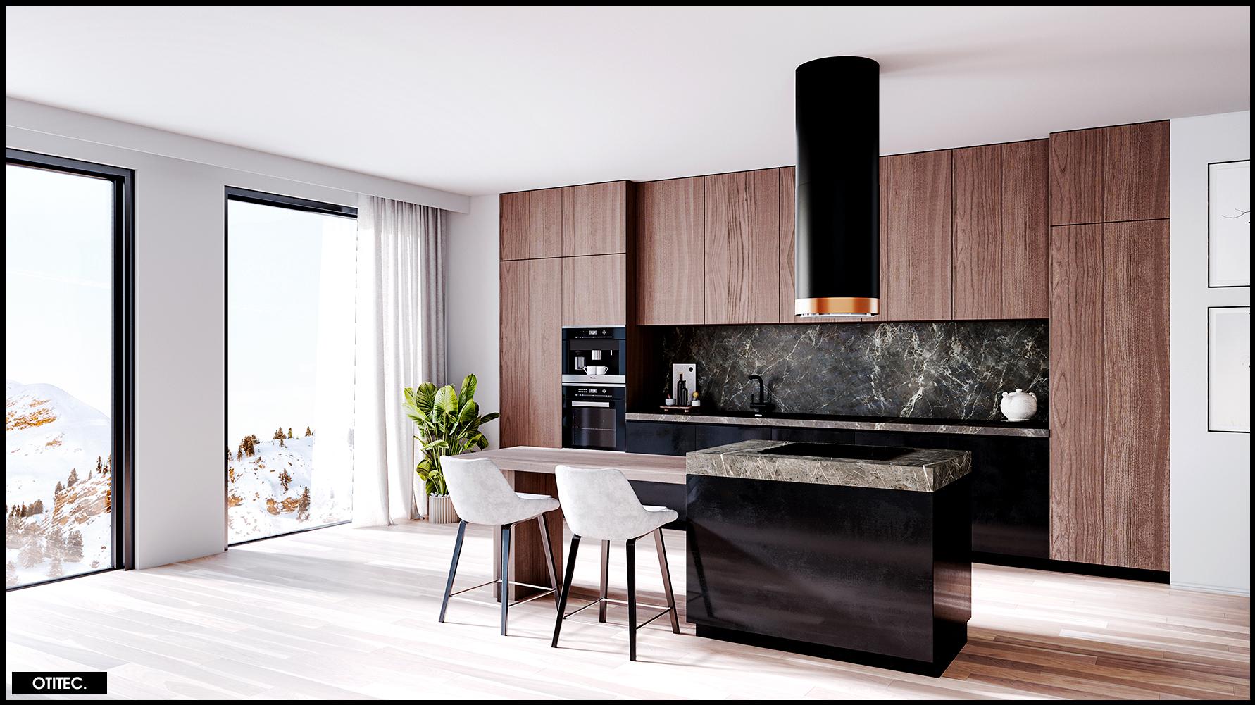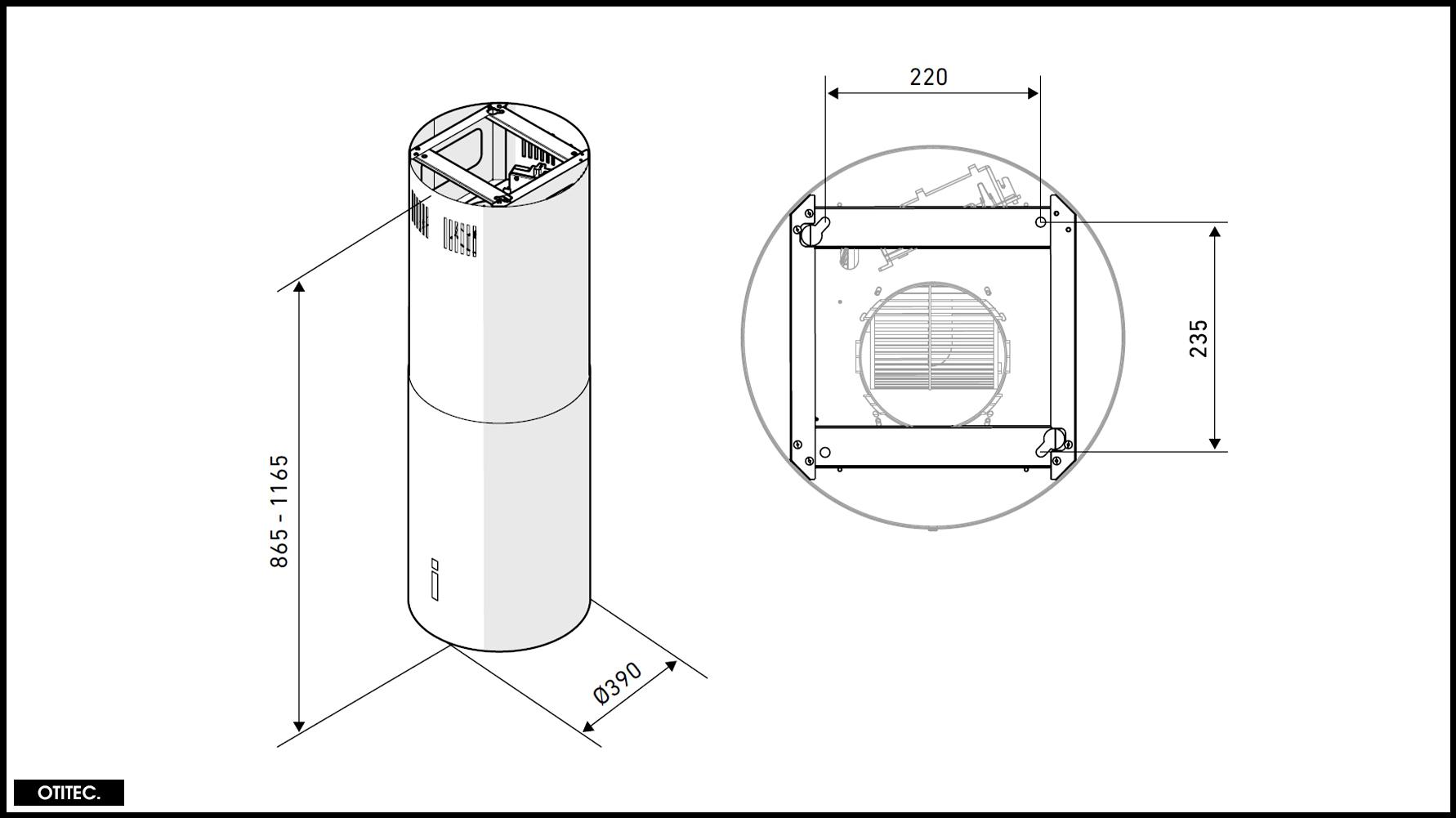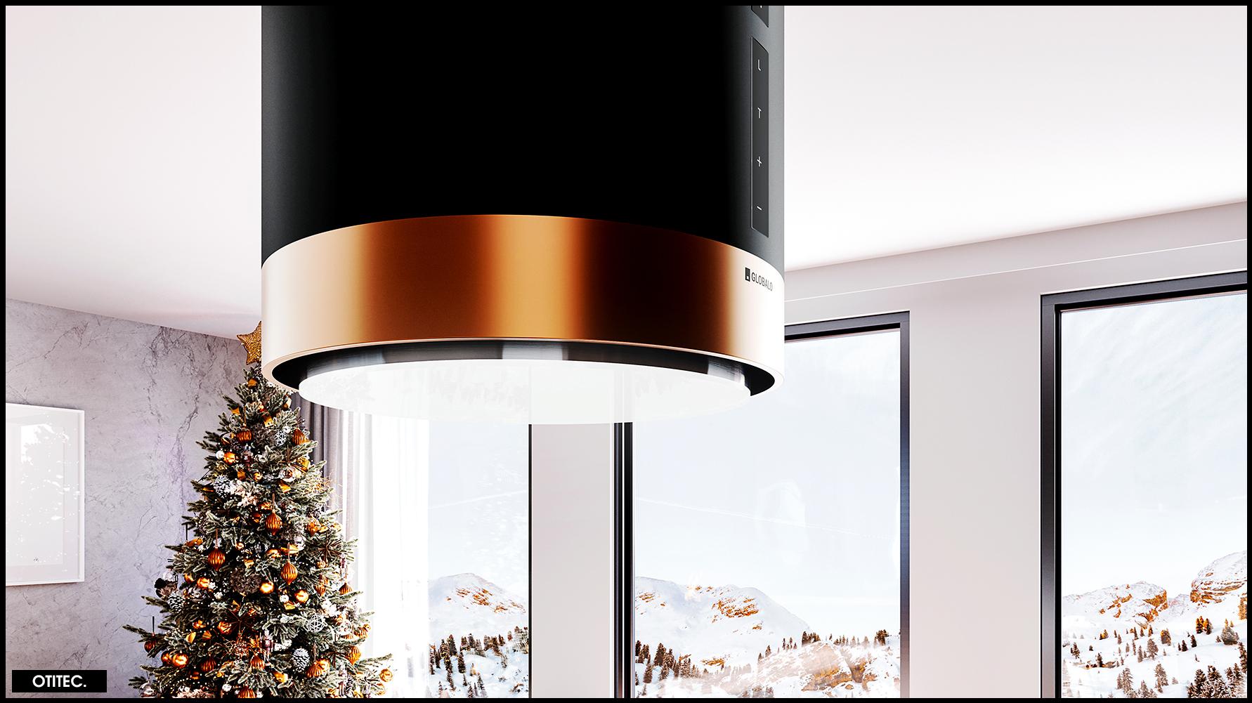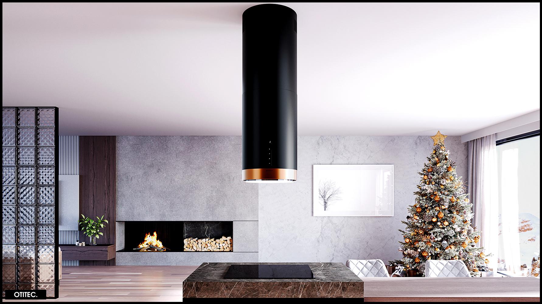 Hotte Îlot Aspirante Silencieuse - 39 cm - 675 m3/h - HEWENO - Noir avec Anneau