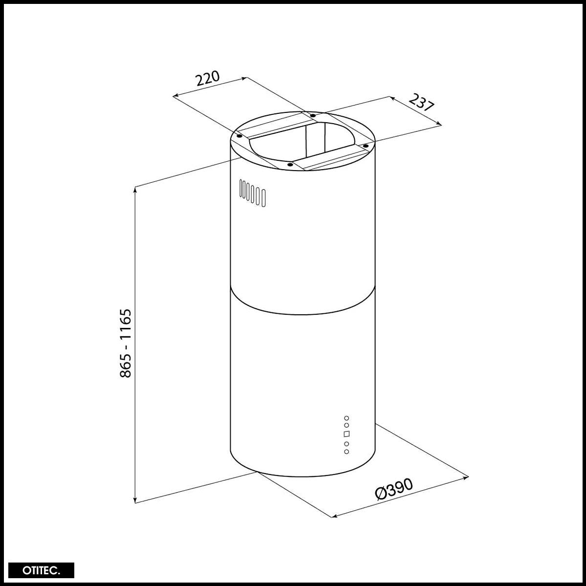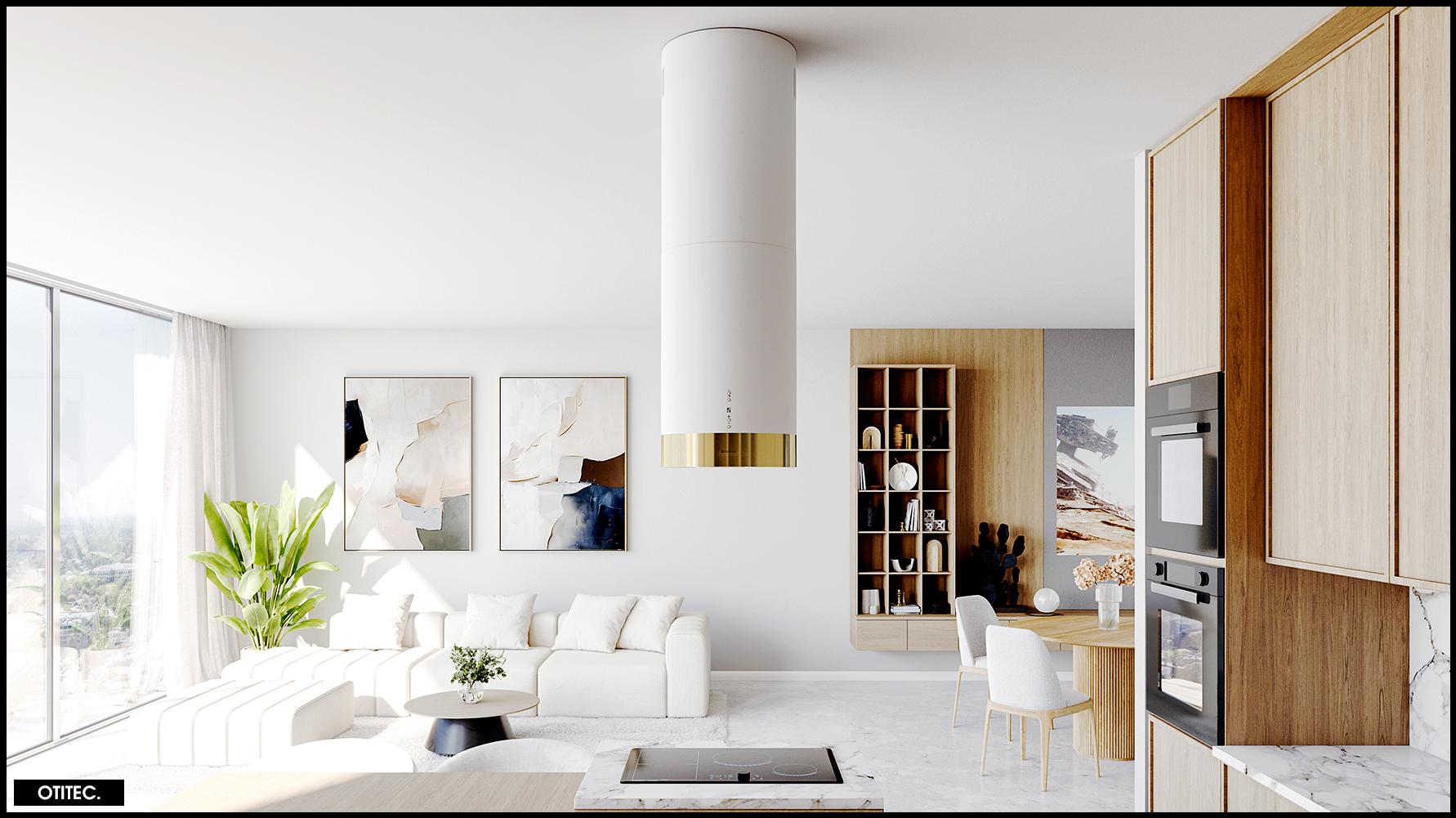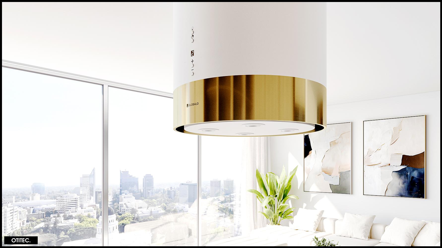 Hotte Îlot Aspirante Silencieuse - 39 cm - 742 m3/h - CYLINDRO - Blanc avec Anneau