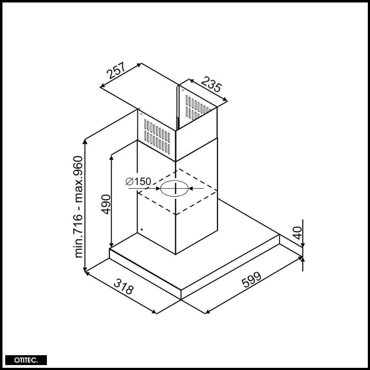 Hotte Murale Aspirante Silencieuse - 60 cm - 555 m3/h - AVENTELIO - Noir
