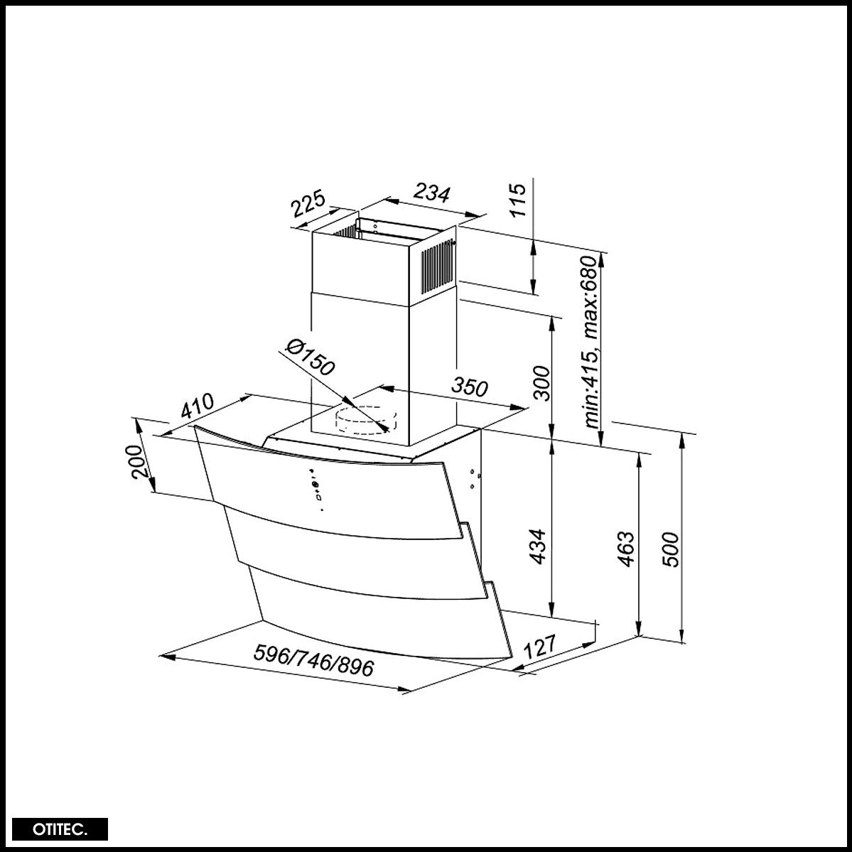 Hotte Murale Aspirante Silencieuse - 75 cm - 720 m3/h - VINTIO - Noir