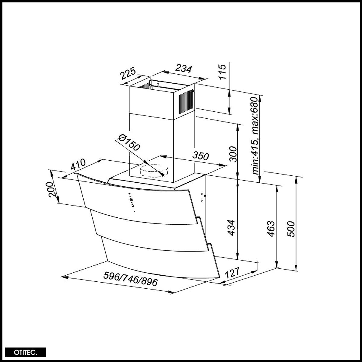Hotte Murale Aspirante Silencieuse - 90 cm - 720 m3/h - VINTIO - Noir