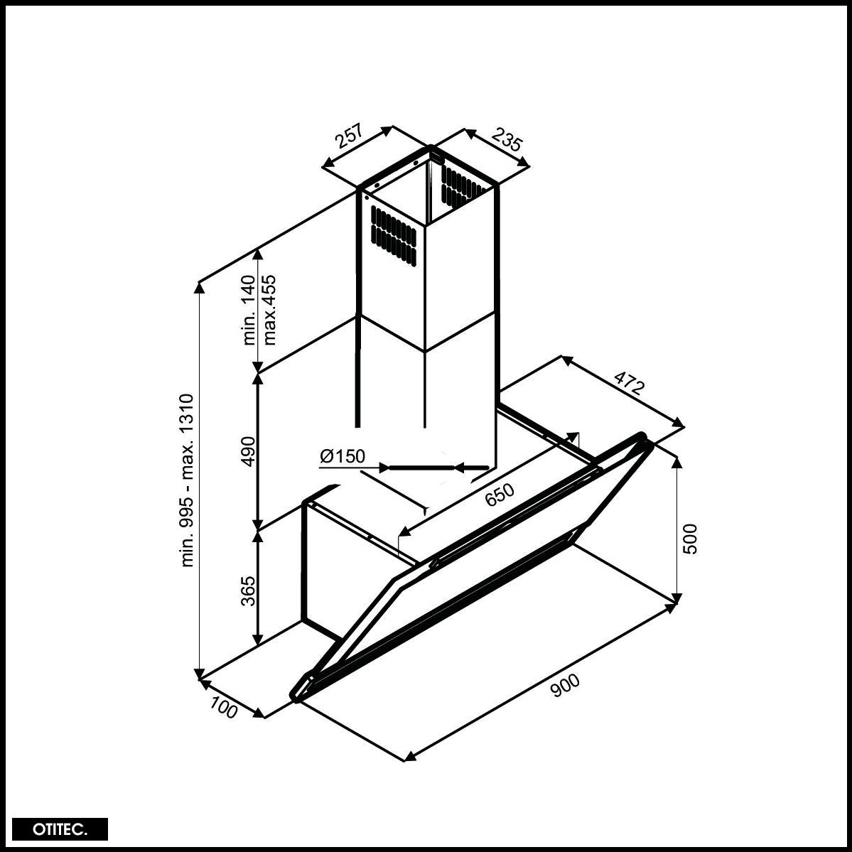 Hotte Murale Aspirante Silencieuse - 90 cm - 760 m3/h - ZENESOR - Noir