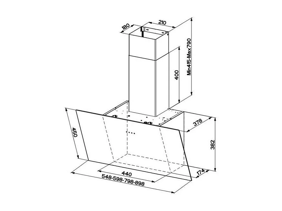 Hotte verticale inclinée TWEET 550mm verre noir - classe C - débit max FABER - 5476140