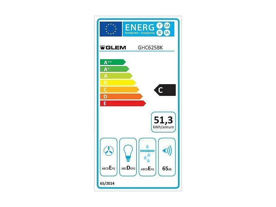 Hotte visière 250m³/h GLEM 60cm, GHC625BK