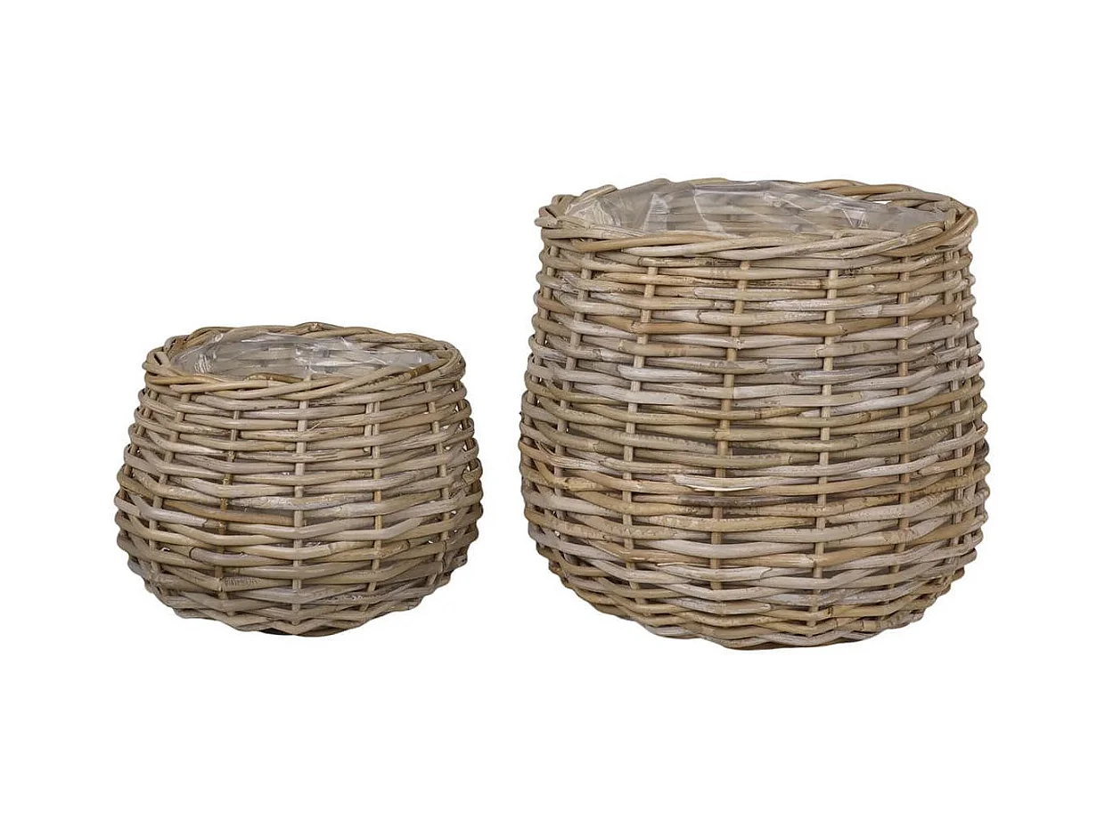 NALINI - Lot de 2 Cache-Pots Ø39cm et Ø29cm en Rotin Kubu Tressé