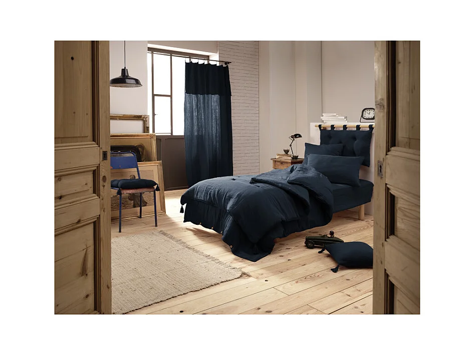 Housse de couette gaze de coton double 140 x 200 cm bleu nuit - PEPA 1