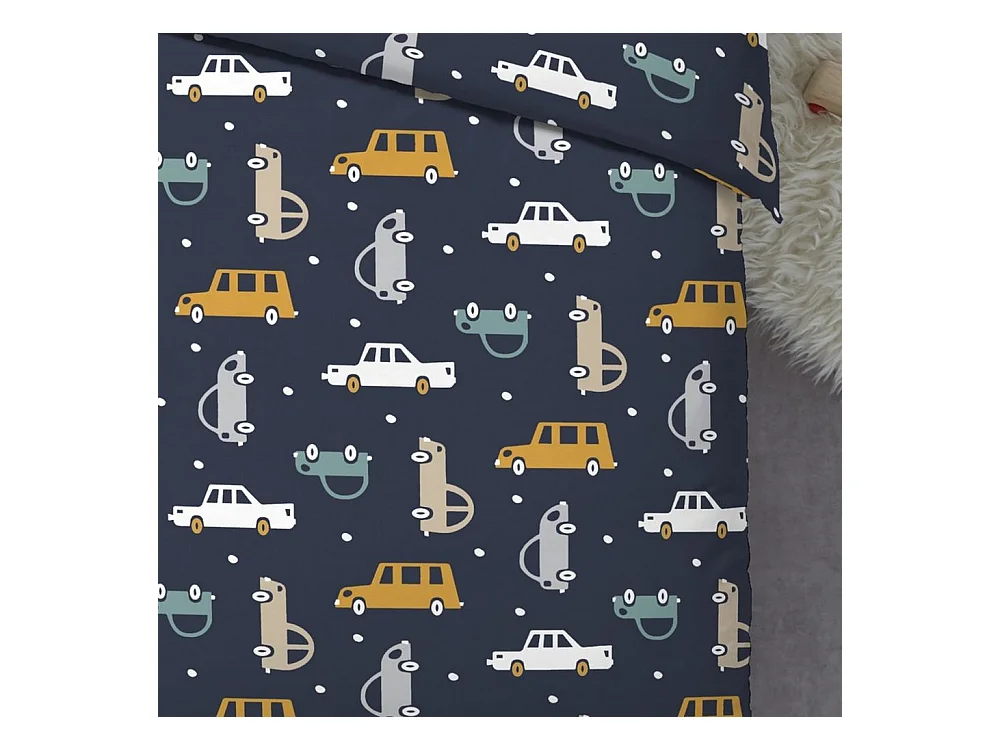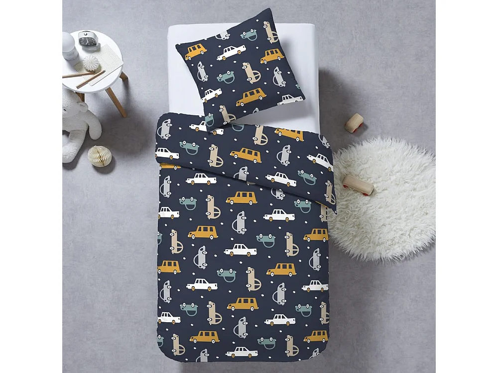 Housse de couette 140x200 cm + 1 taie 100% Coton 57 fils Auto Marine