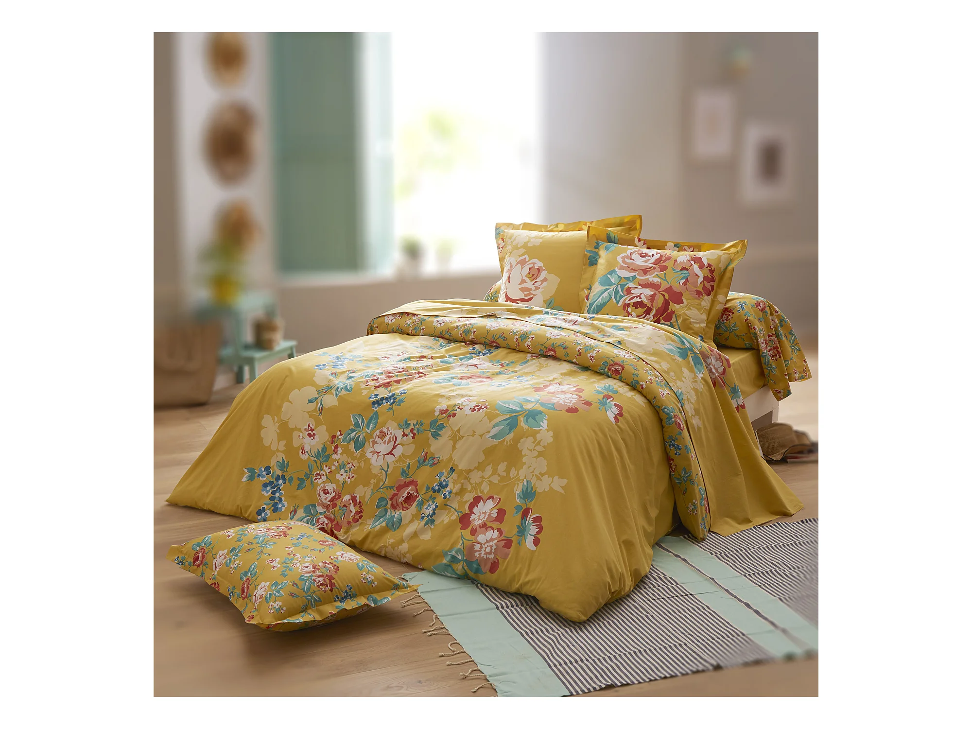 Housse de couette 200x200 cm coton OBSESSION jaune Safran avec impression fixé-lavé