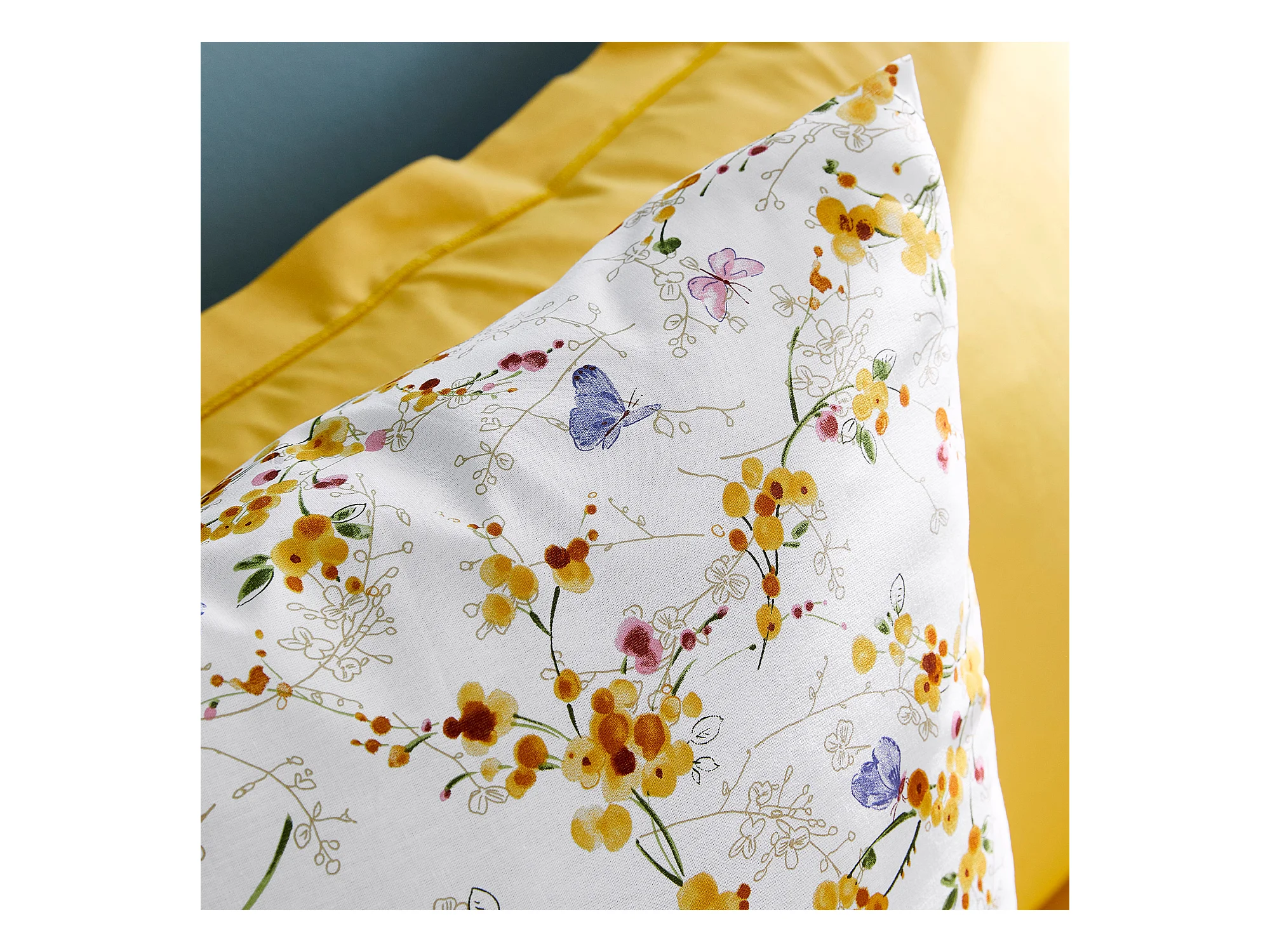 Housse de couette 200x200 cm coton PAPILLONS jaune Moutarde