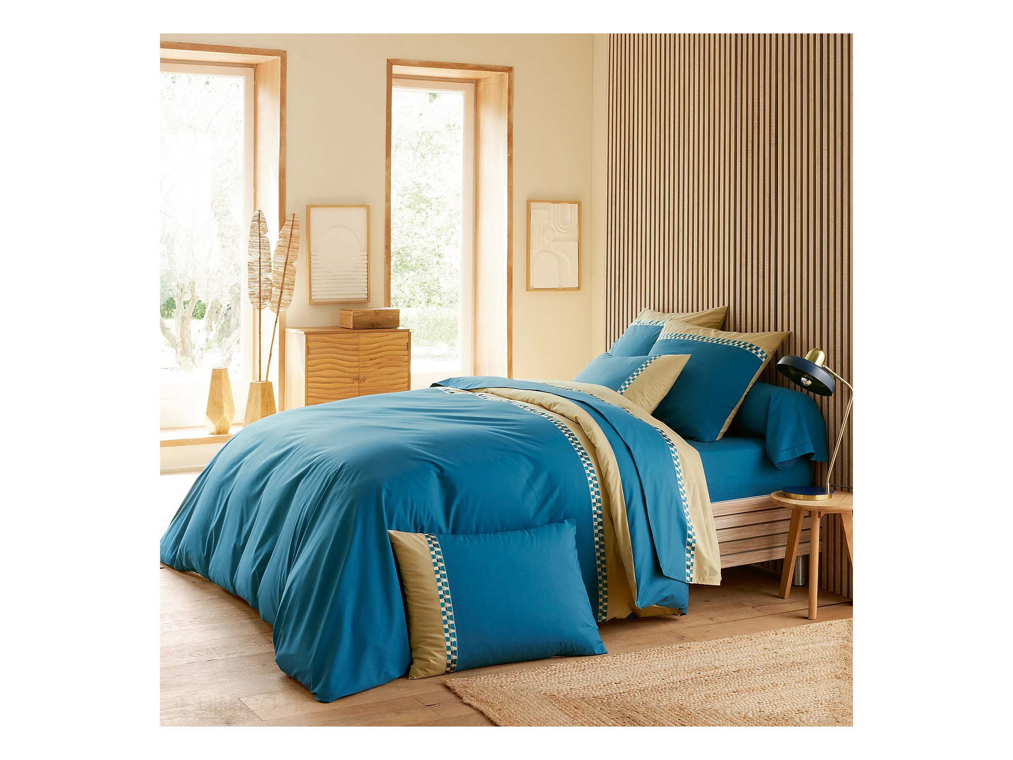 Housse de couette 200x200 cm percale coton ESTEBAN Bleu