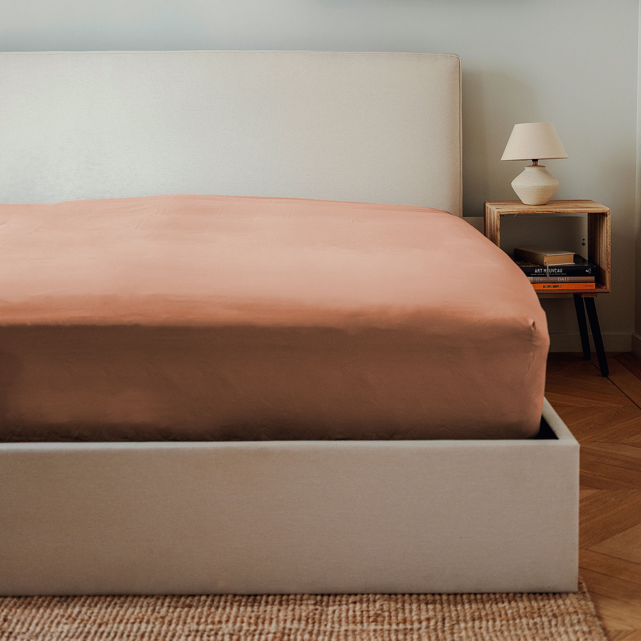 Drap housse en coton 57 fils uni bonnet 25cm tilleul 160x200cm