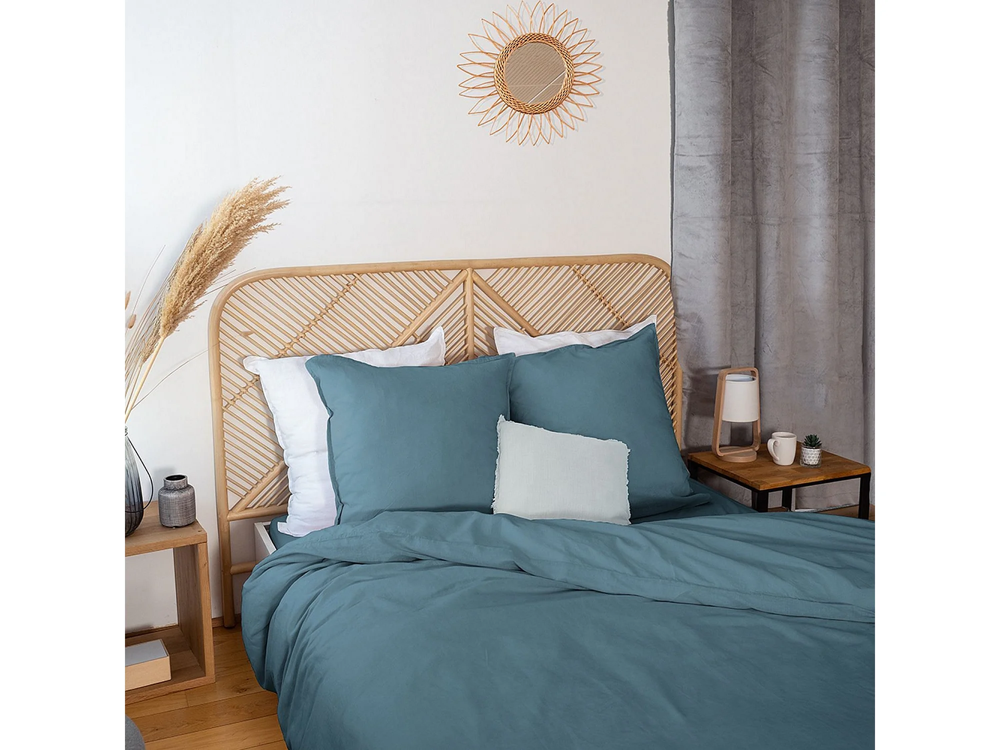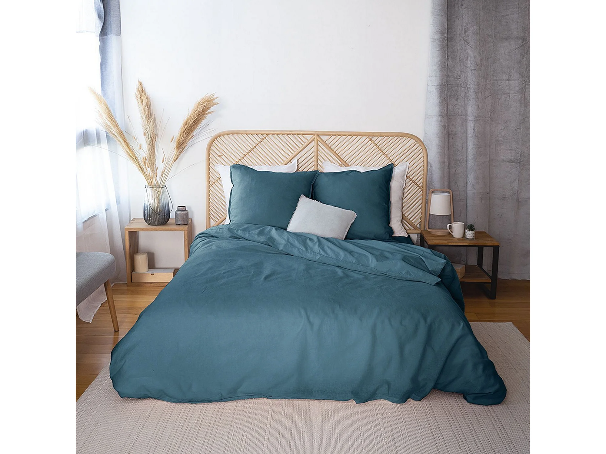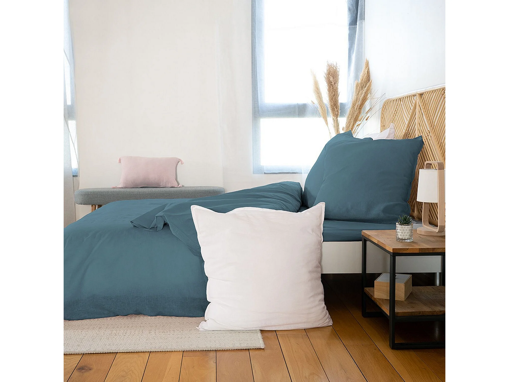 Housse de couette 240x260 + 2 taies d'oreiller 63x63 Lin Métis Lavé Marine