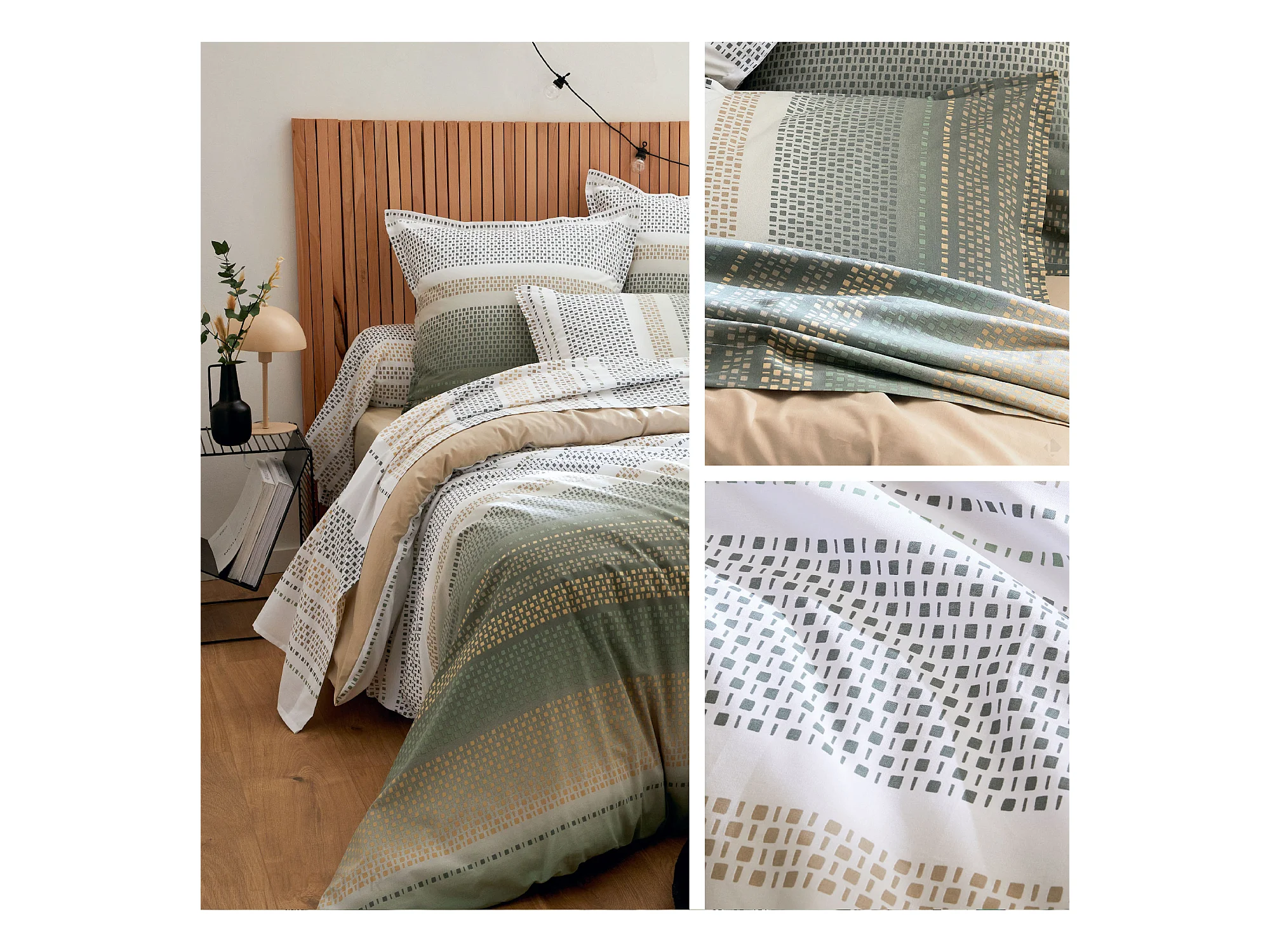 Housse de couette 260x240 cm percale coton ALEX vert Kaki