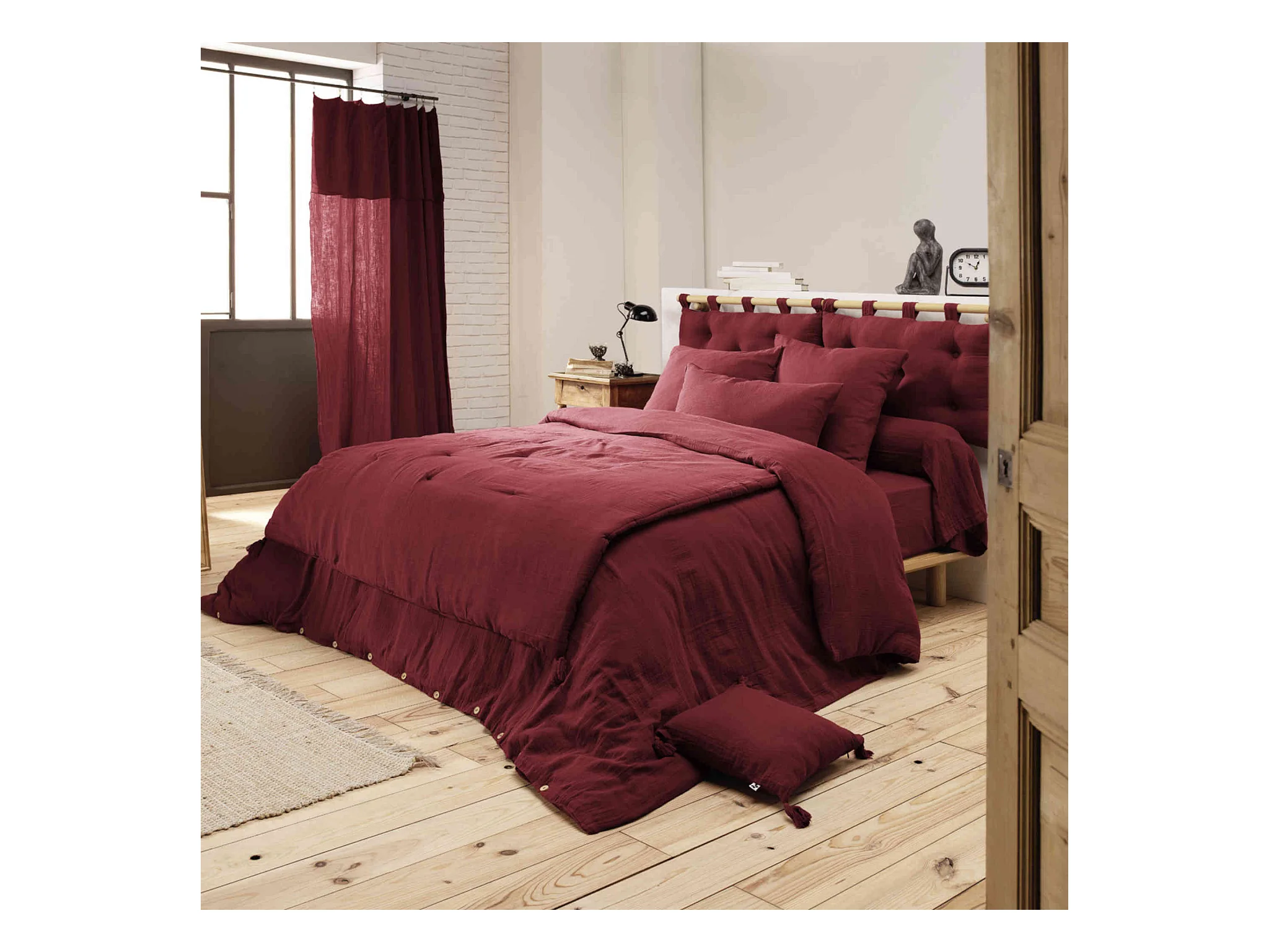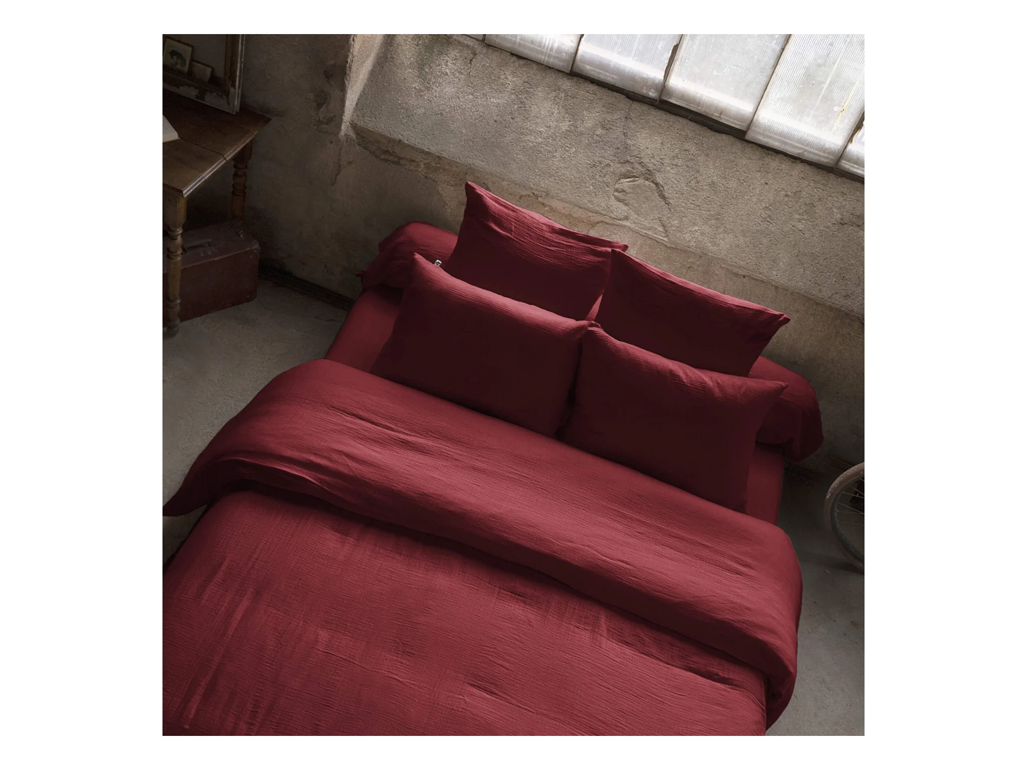 Housse de couette double gaze de coton bordeaux 200x200 cm