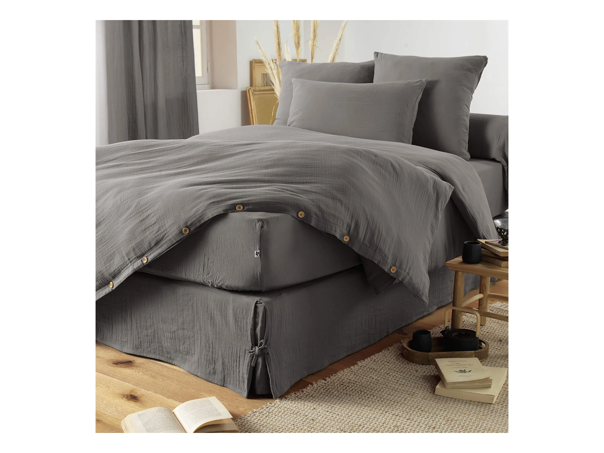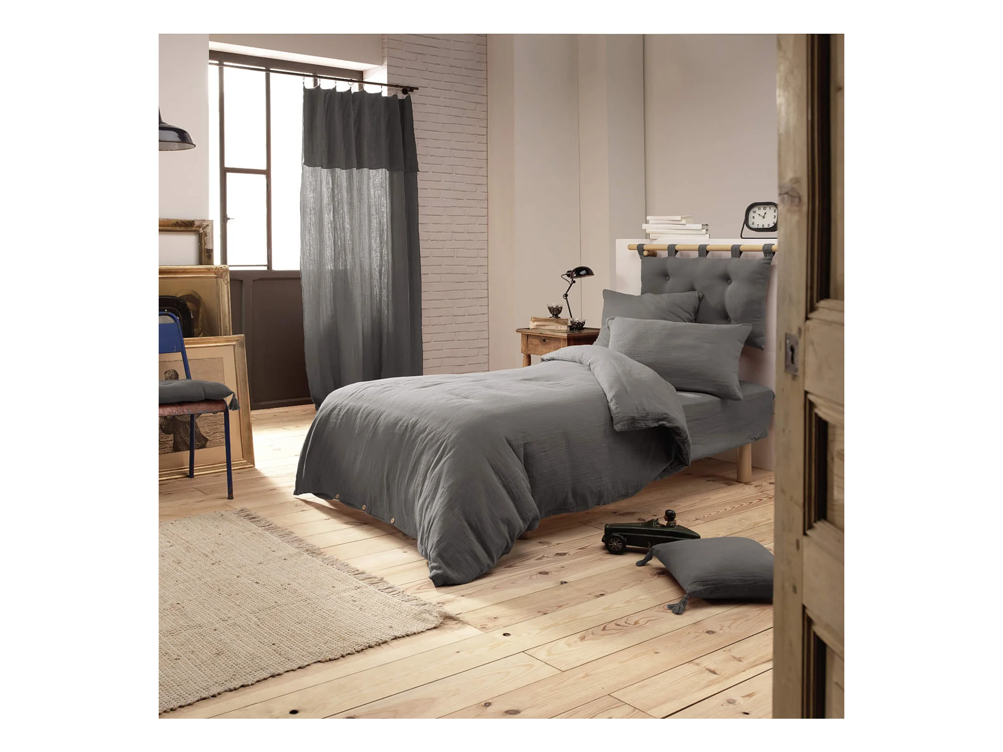 Housse de couette double gaze de coton gris anthracite 140x200 cm
