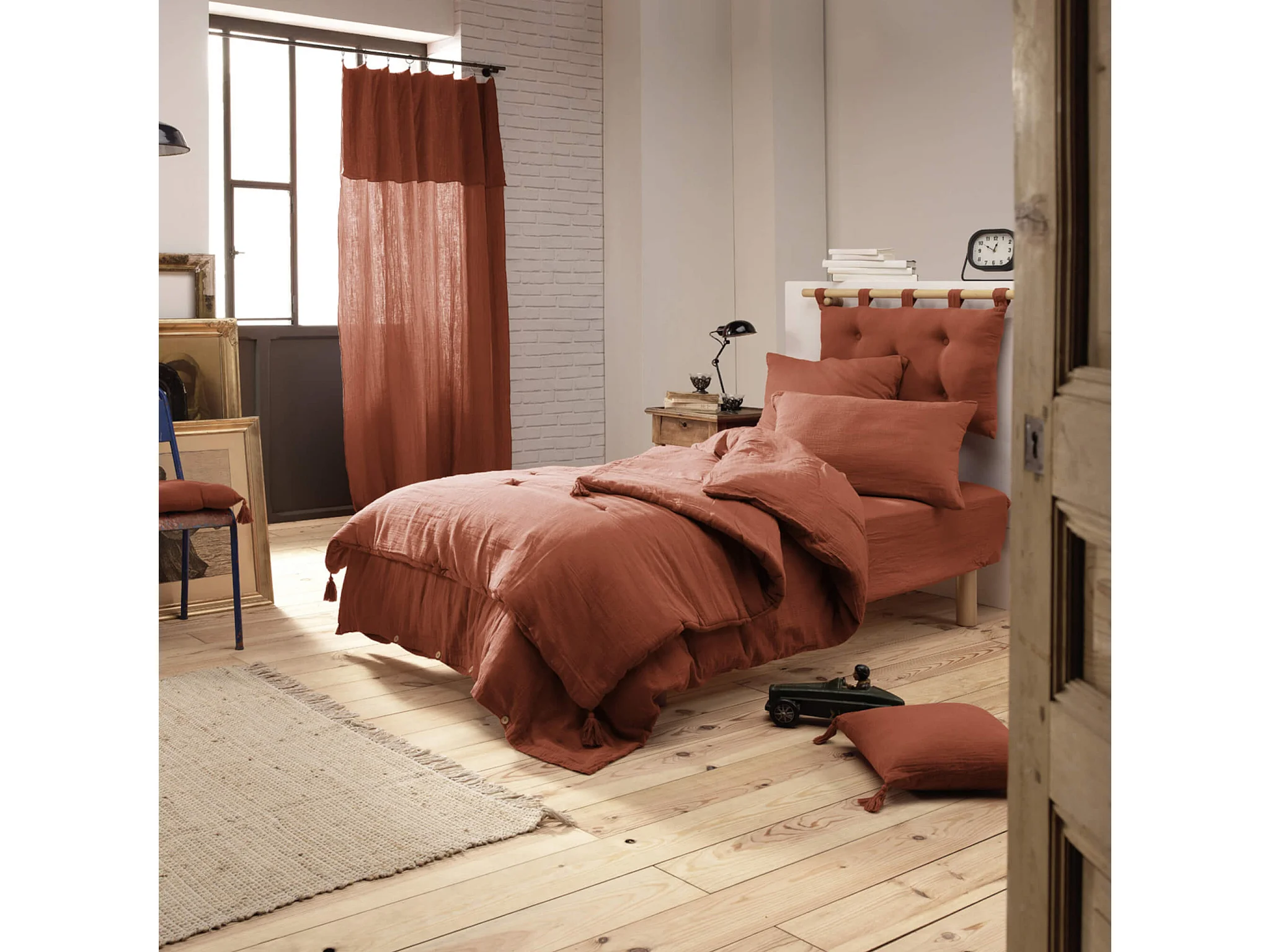 Housse de couette double gaze de coton orange terracotta 260x240 cm