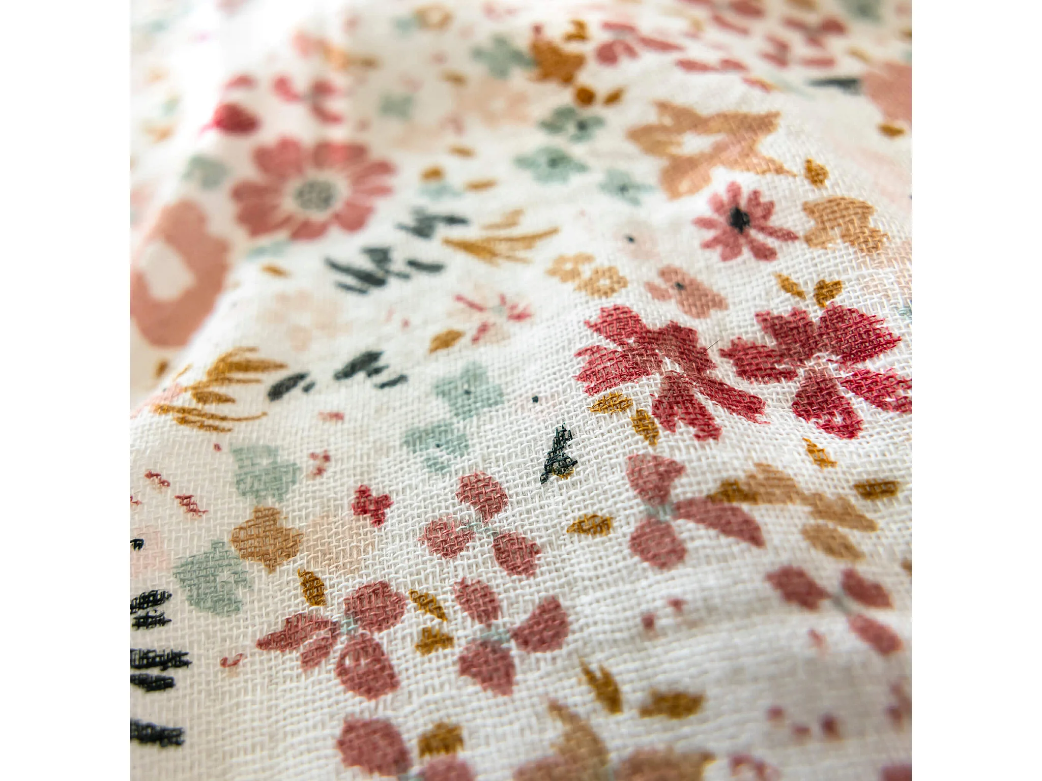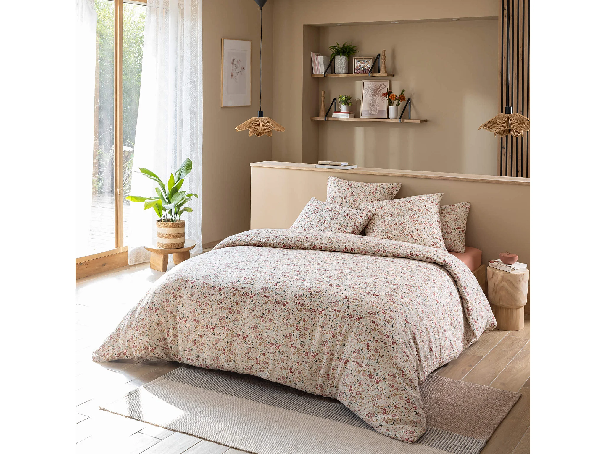 Housse de couette 200x200 gaze de coton à fleurs roses Terre de Nuit