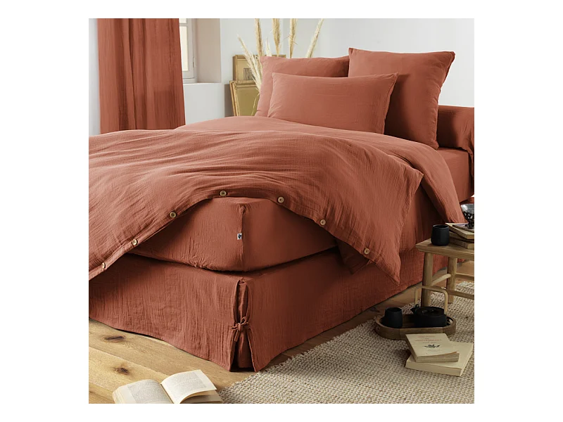 Taie d'oreiller coton lavé - SOMEO Terracotta 50x70 - CELESTE