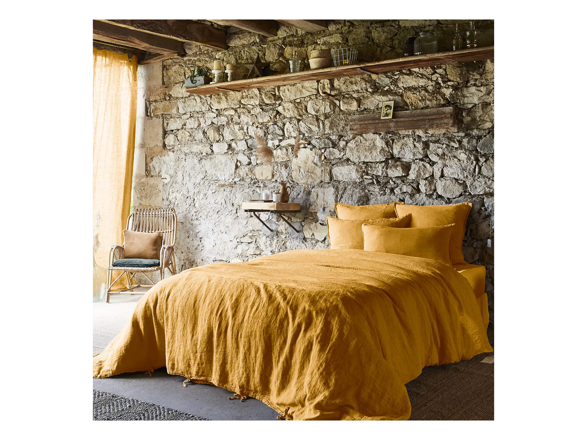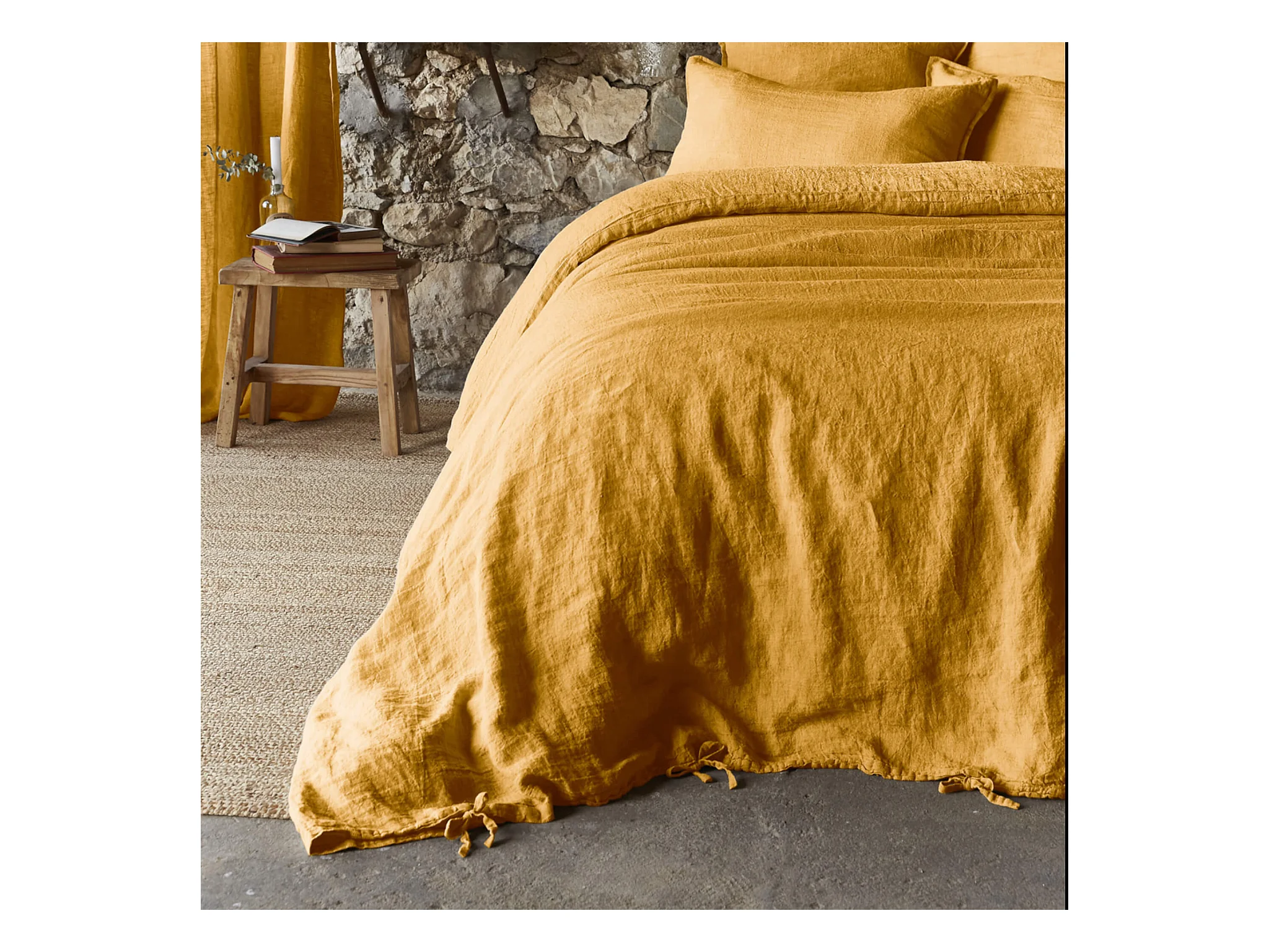 Housse de couette lin lavé jaune foncé 260x240