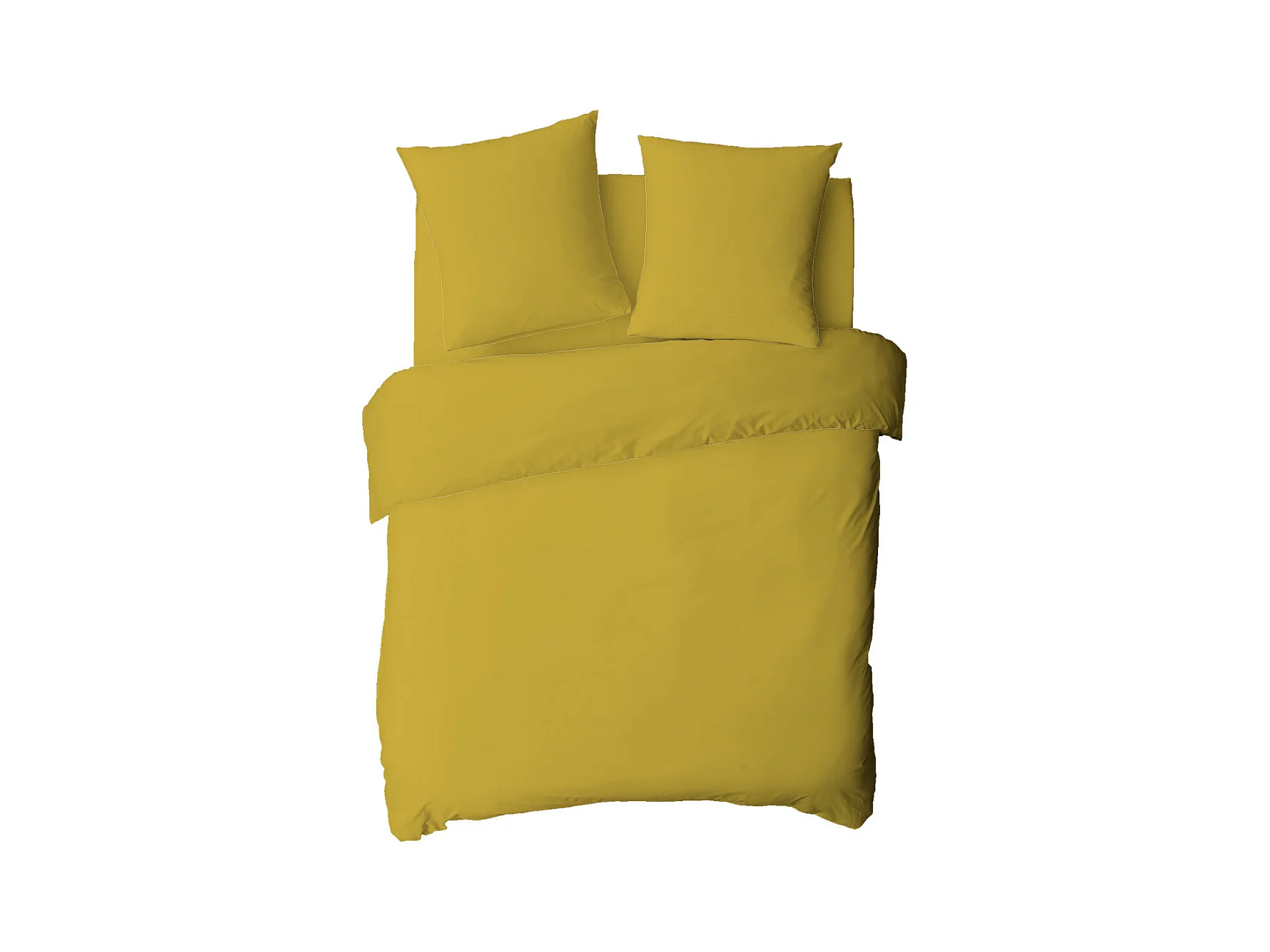 Housse de couette en coton 57 fils unie jaune moutarde 240x220cm