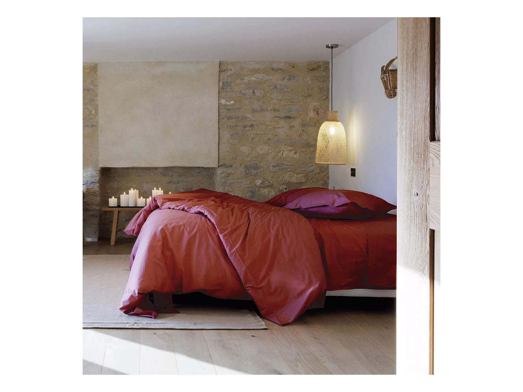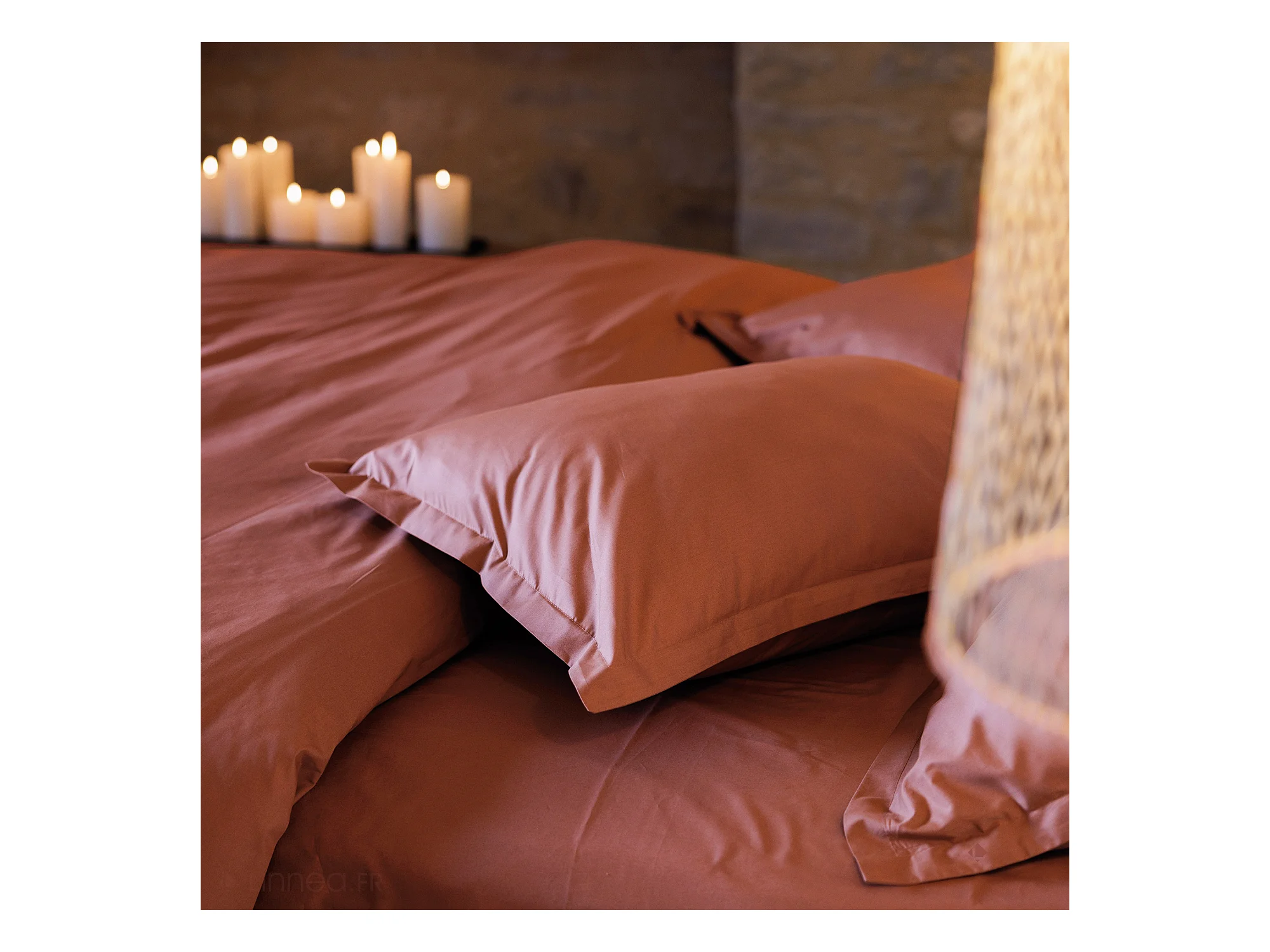 Housse de couette uni 260x240 cm percale de coton MANOIR rose Pêche
