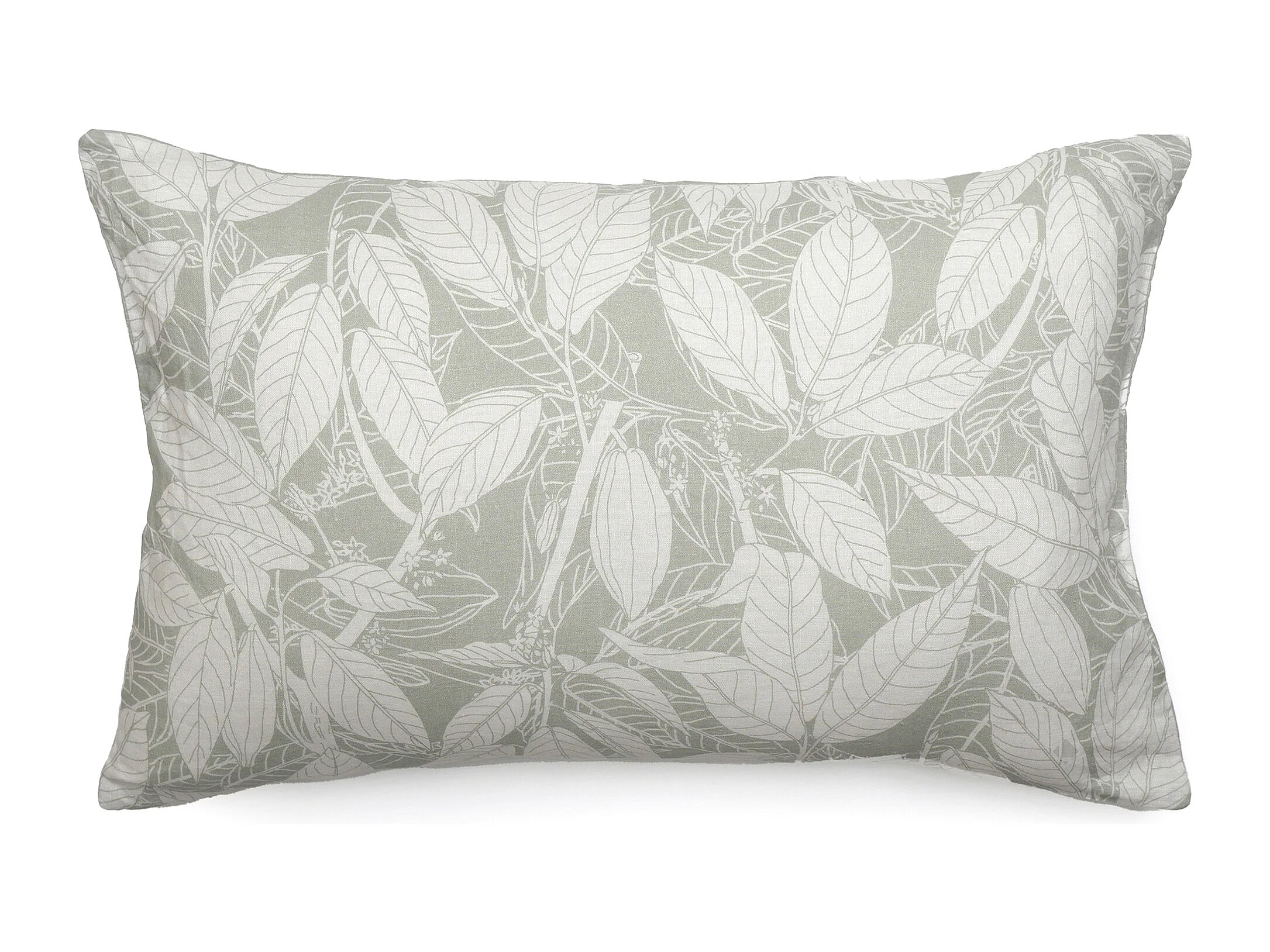 Housse de coussin 40x60 cm lin lavé imprimé végétal HELIOS gris Lichen
