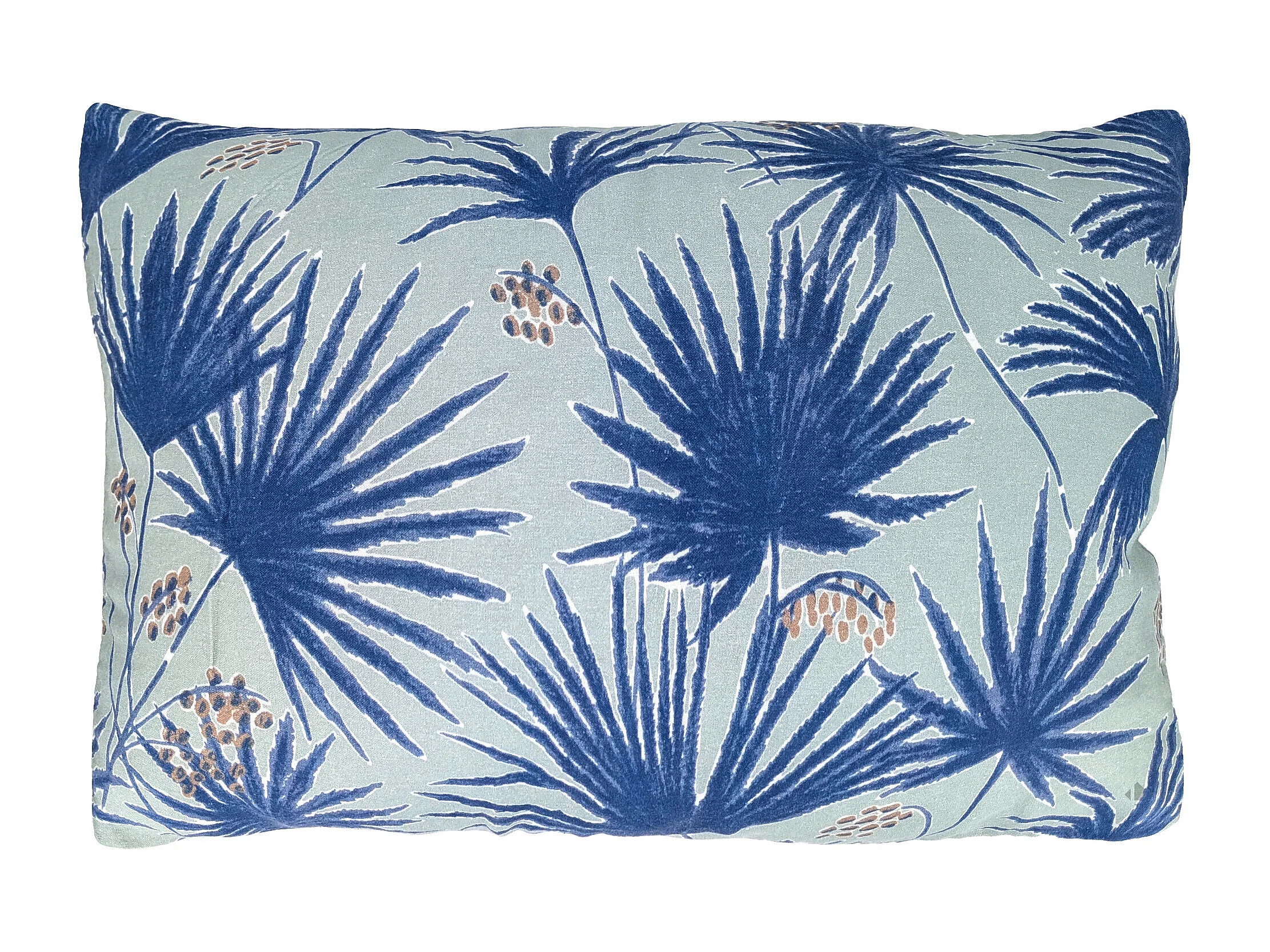 Housse de coussin 40x60 cm lin lavé motif végétal PALAWAN bleu Indigo