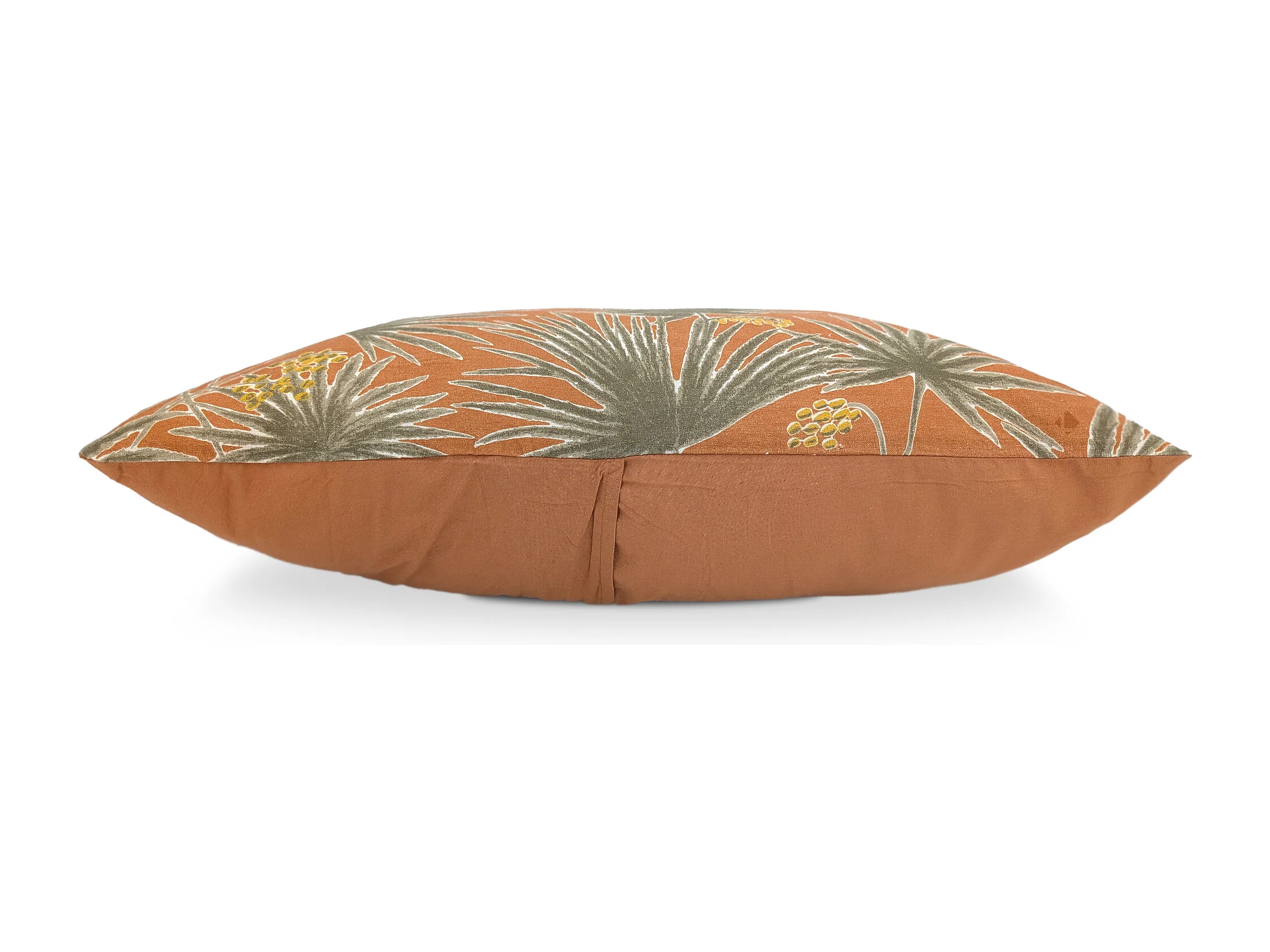 Housse de coussin 40x60 cm lin lavé motif végétal PALAWAN Terracotta