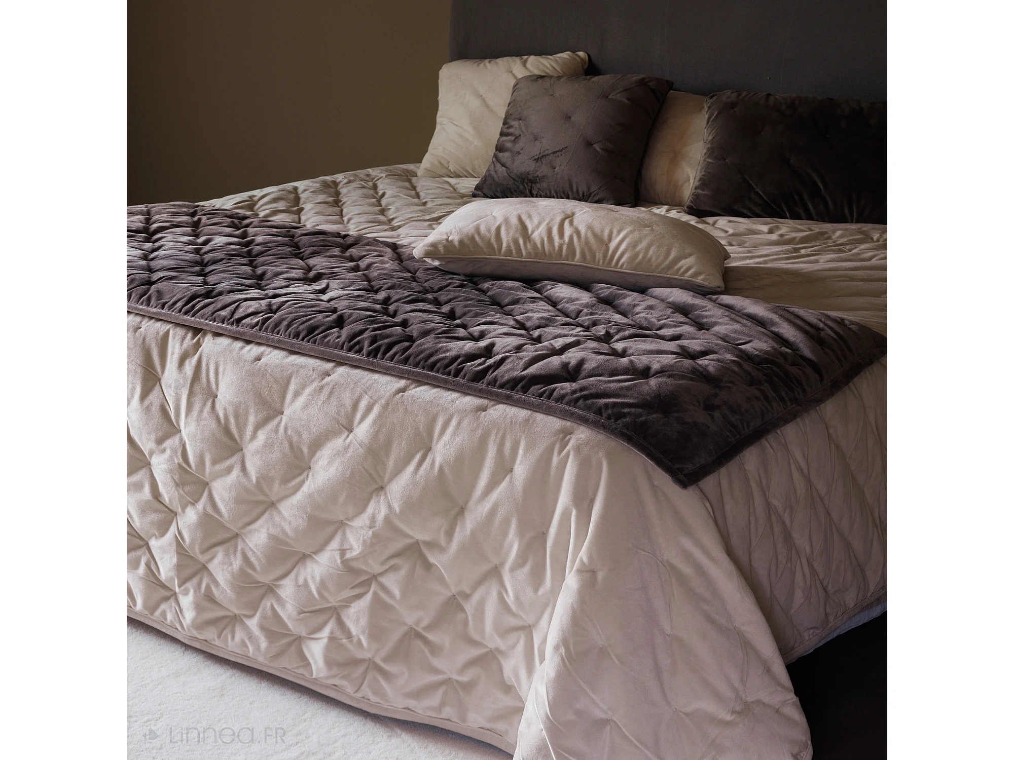 Housse de coussin 40x60 GIPSY velours piquage points brodés blanc Naturel