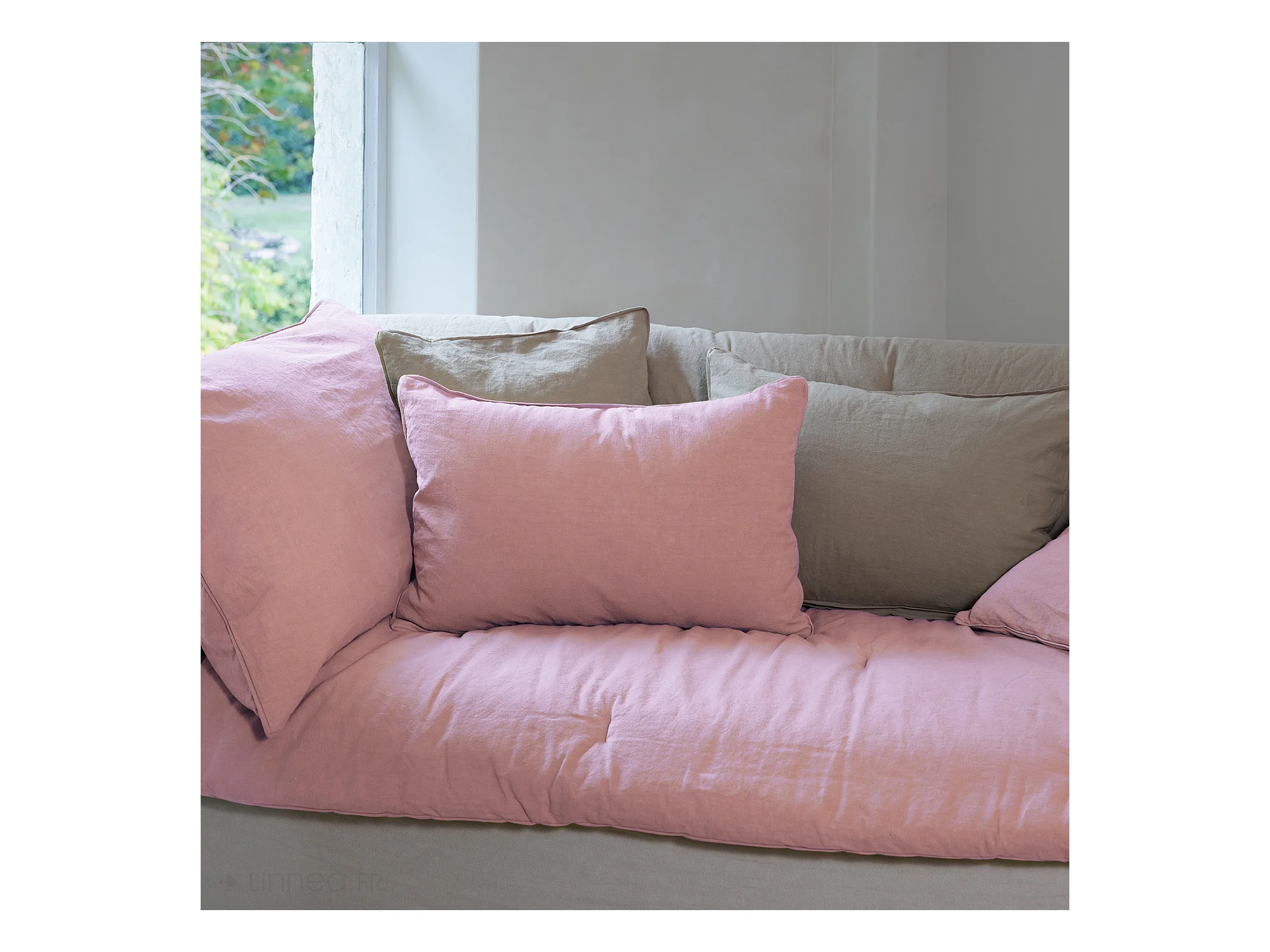 Housse de coussin 45x45 cm 50% lin et 50% coton collection OPERA DECO rose