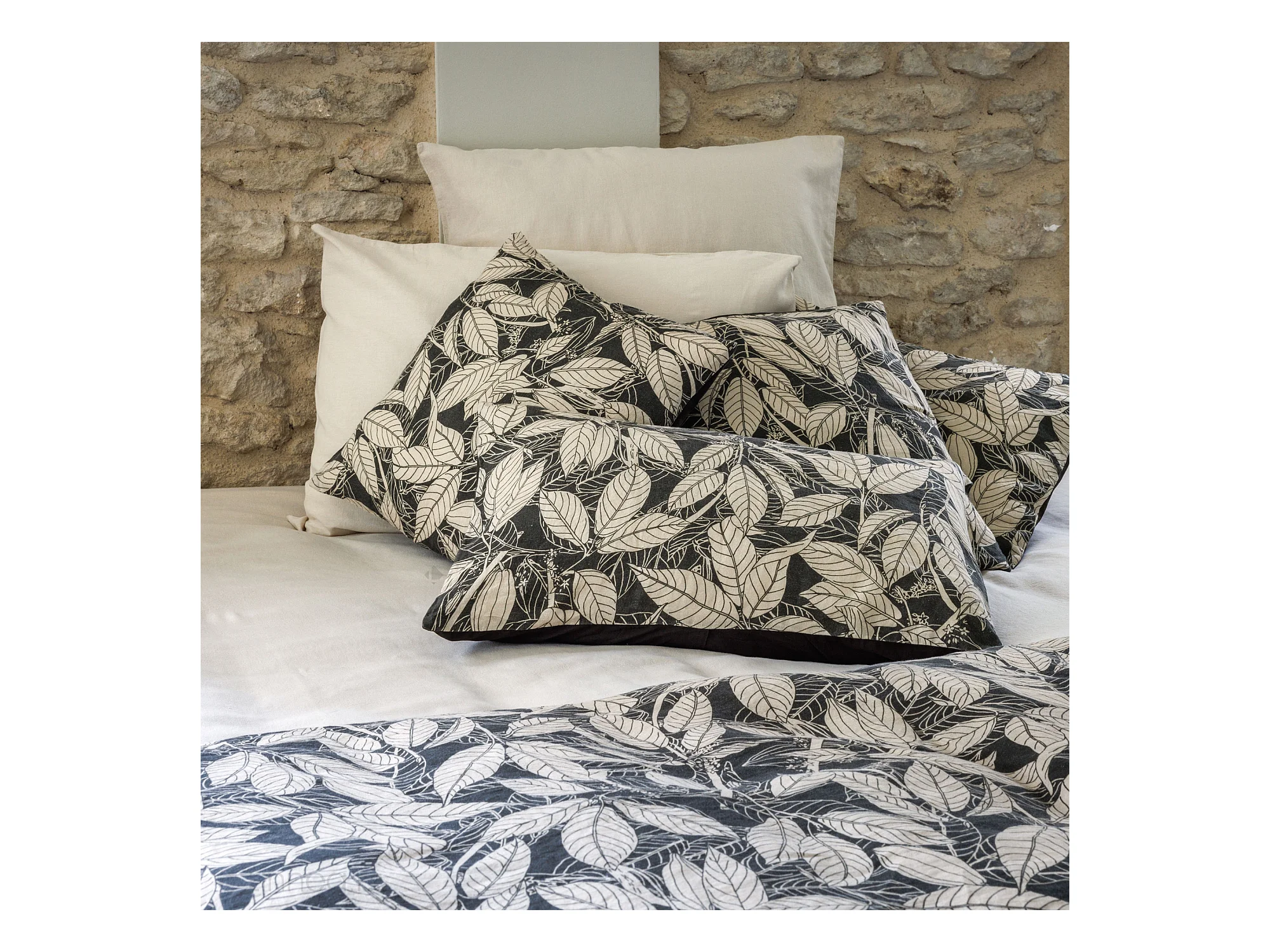 Housse de coussin 45x45 cm lin lavé imprimé végétal HELIOS noir Café