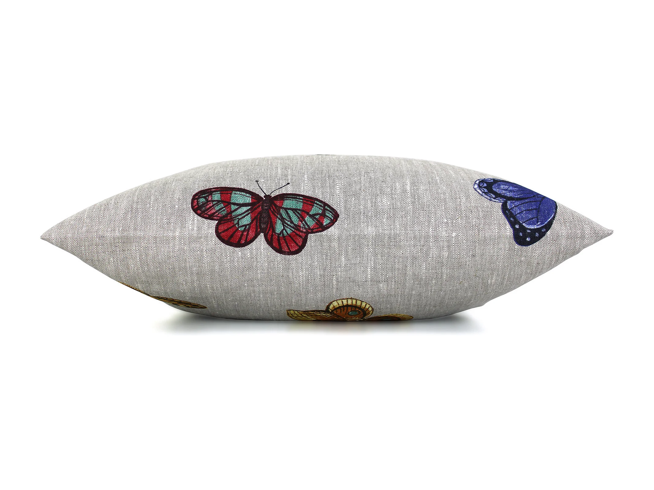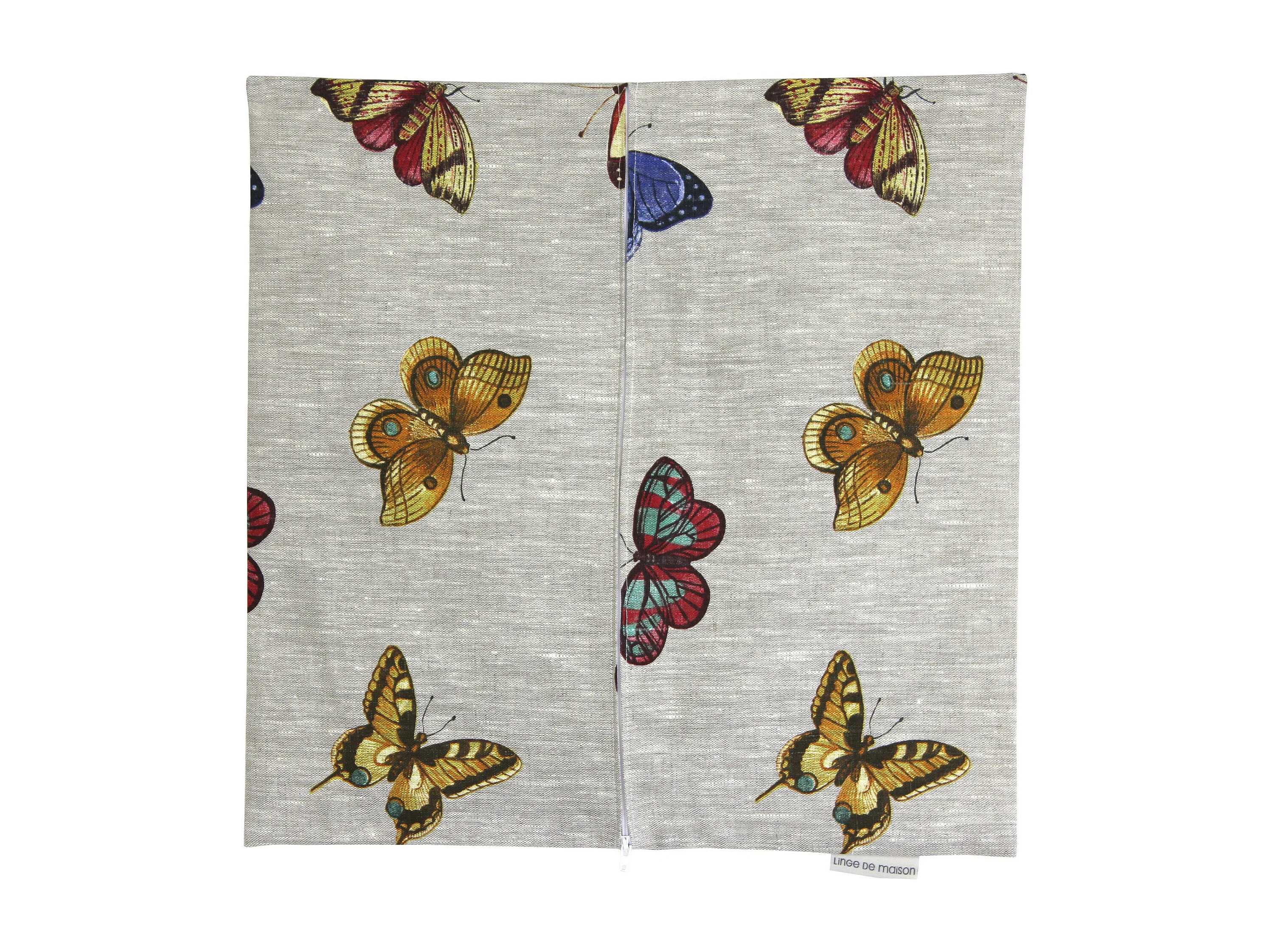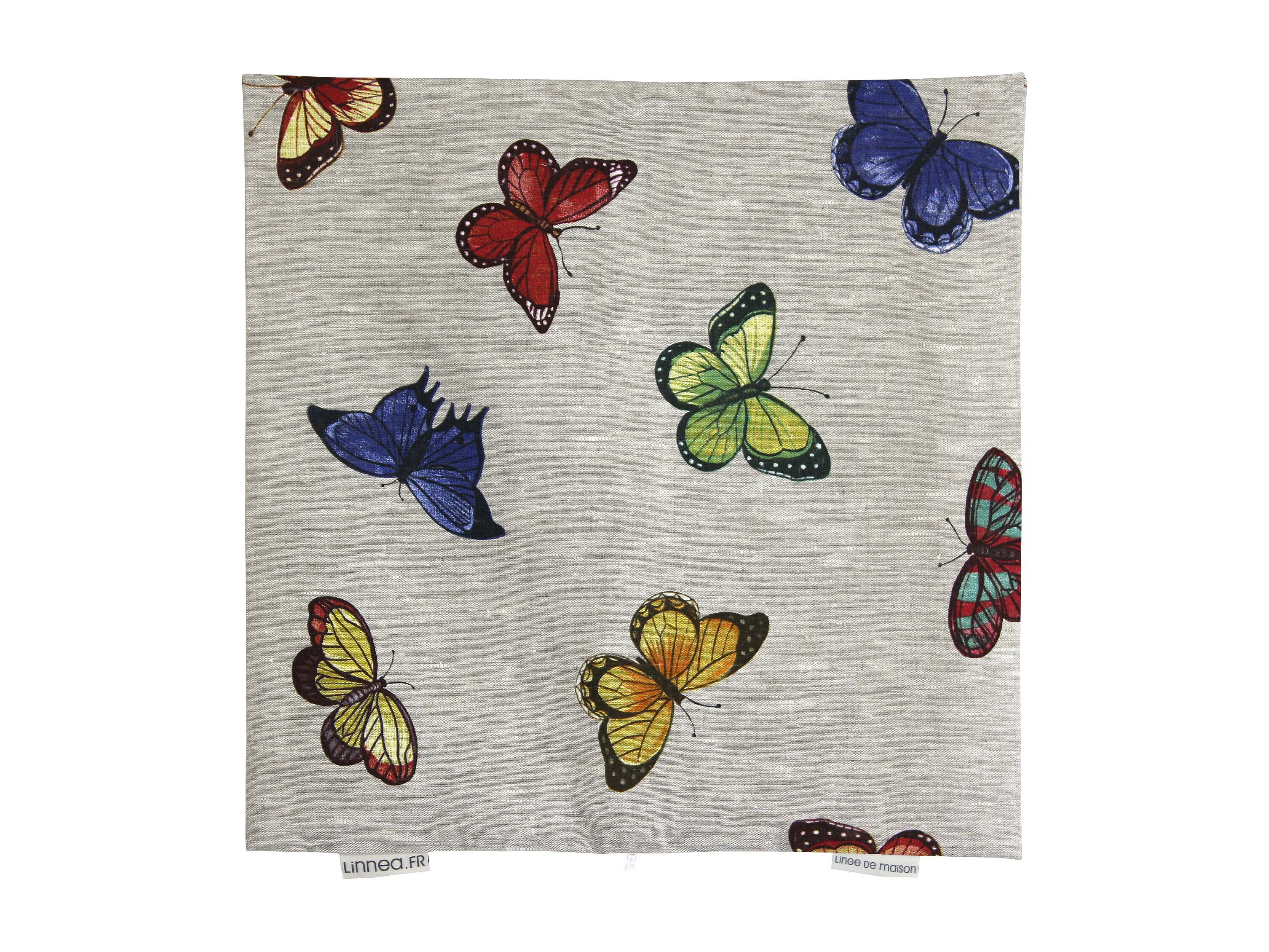 Housse de coussin 45x45 cm GALLICO Papillons bleus jaunes et rouges 100% Lin