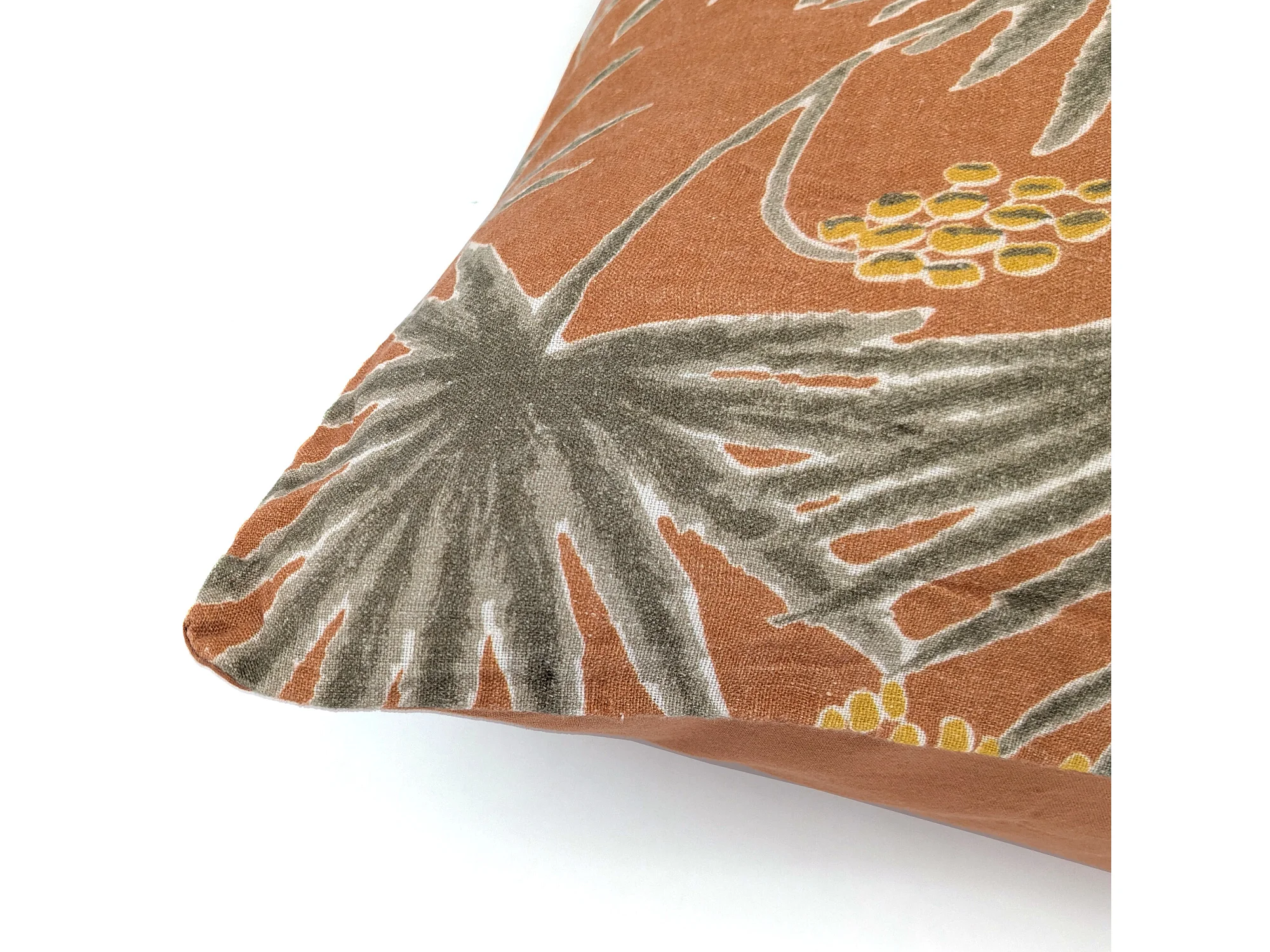 Housse de coussin 45x45 cm lin lavé motif végétal PALAWAN Terracotta