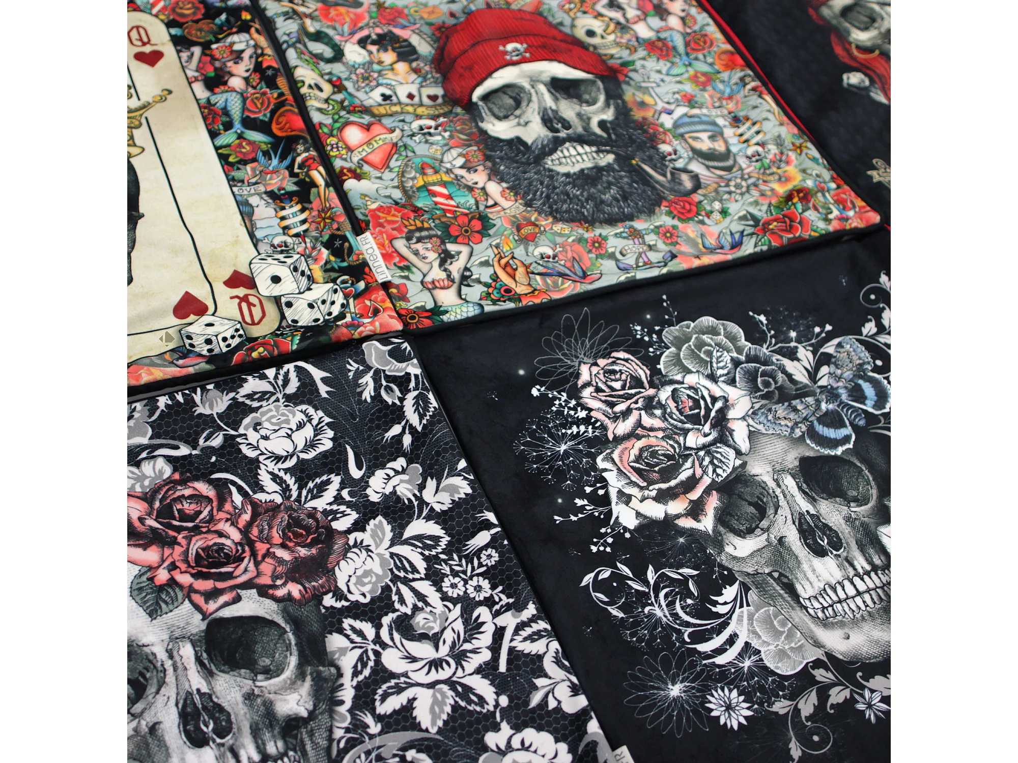 Housse de coussin 45x45 cm Tête de mort Dame de coeur
