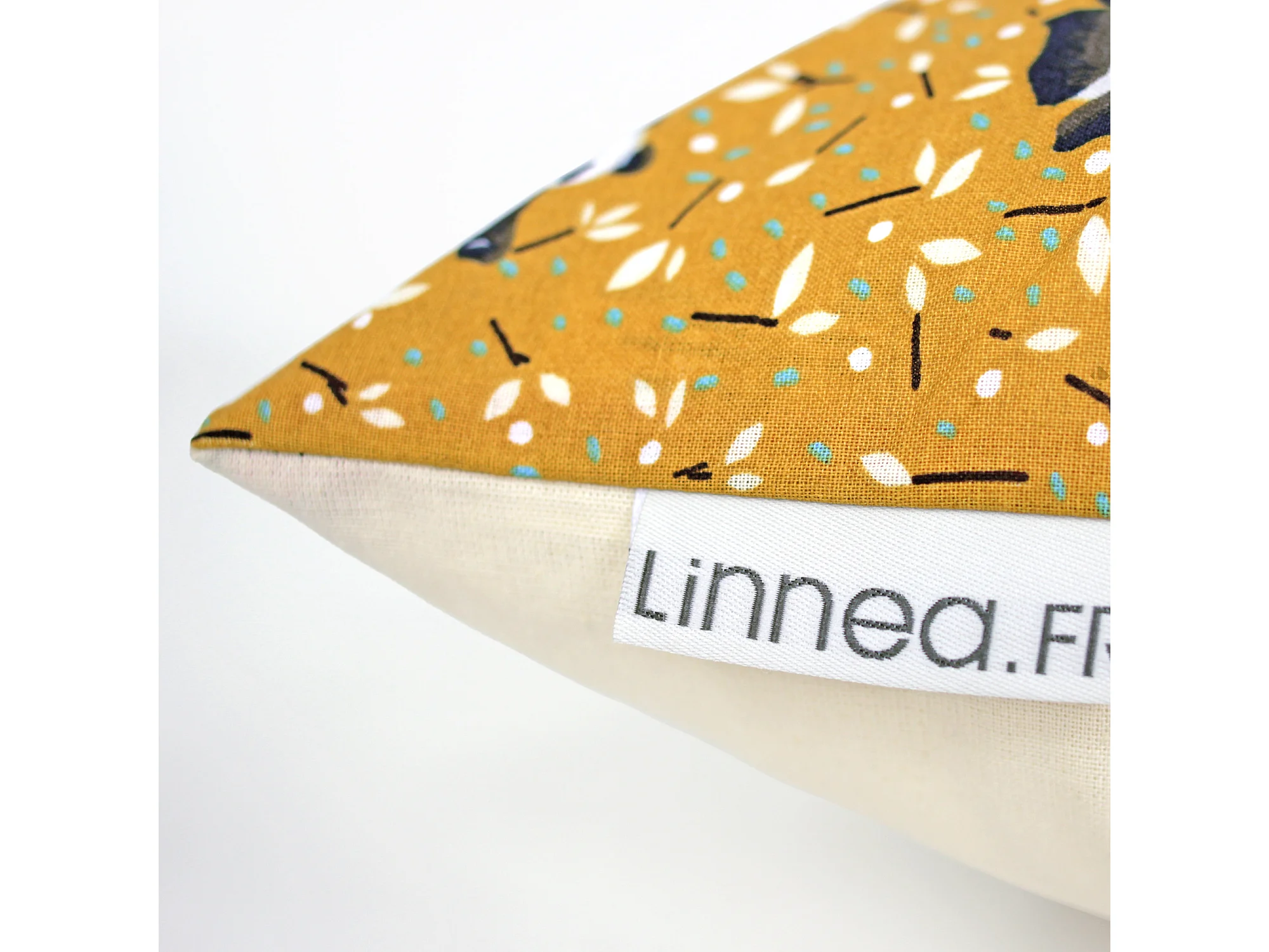 Coussin décoratif déhoussable en coton motifs brodés Ocre 45 x 45 cm