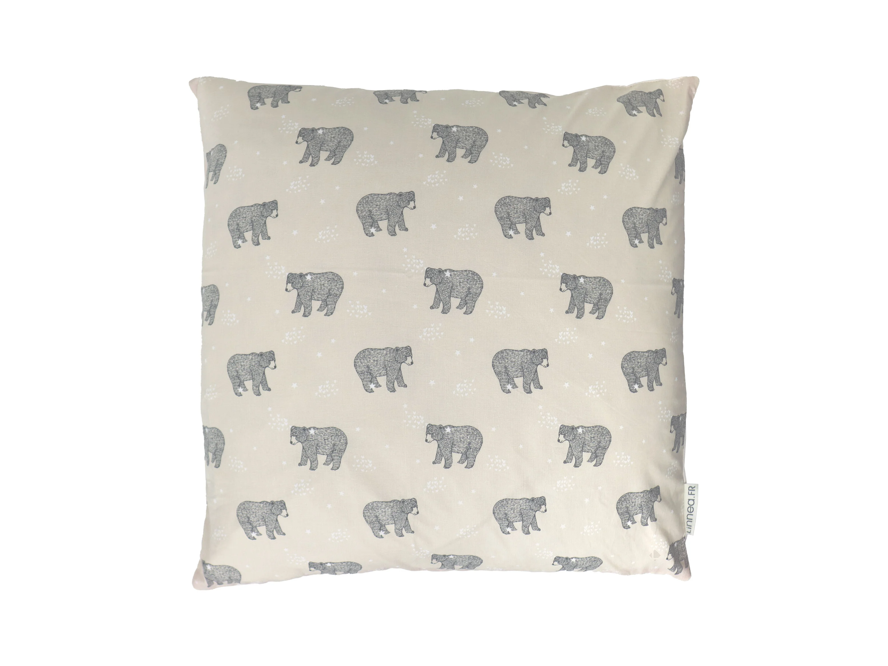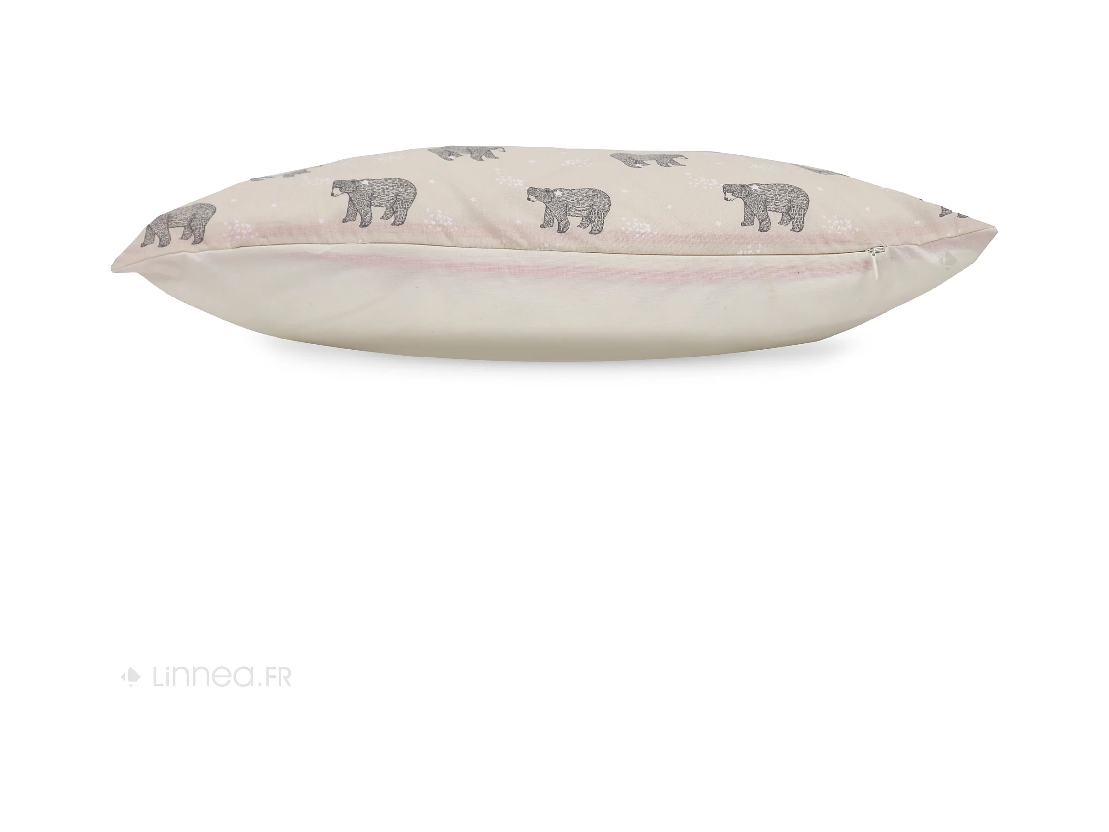 Coussin décoratif déhoussable en coton motifs brodés Ocre 45 x 45 cm