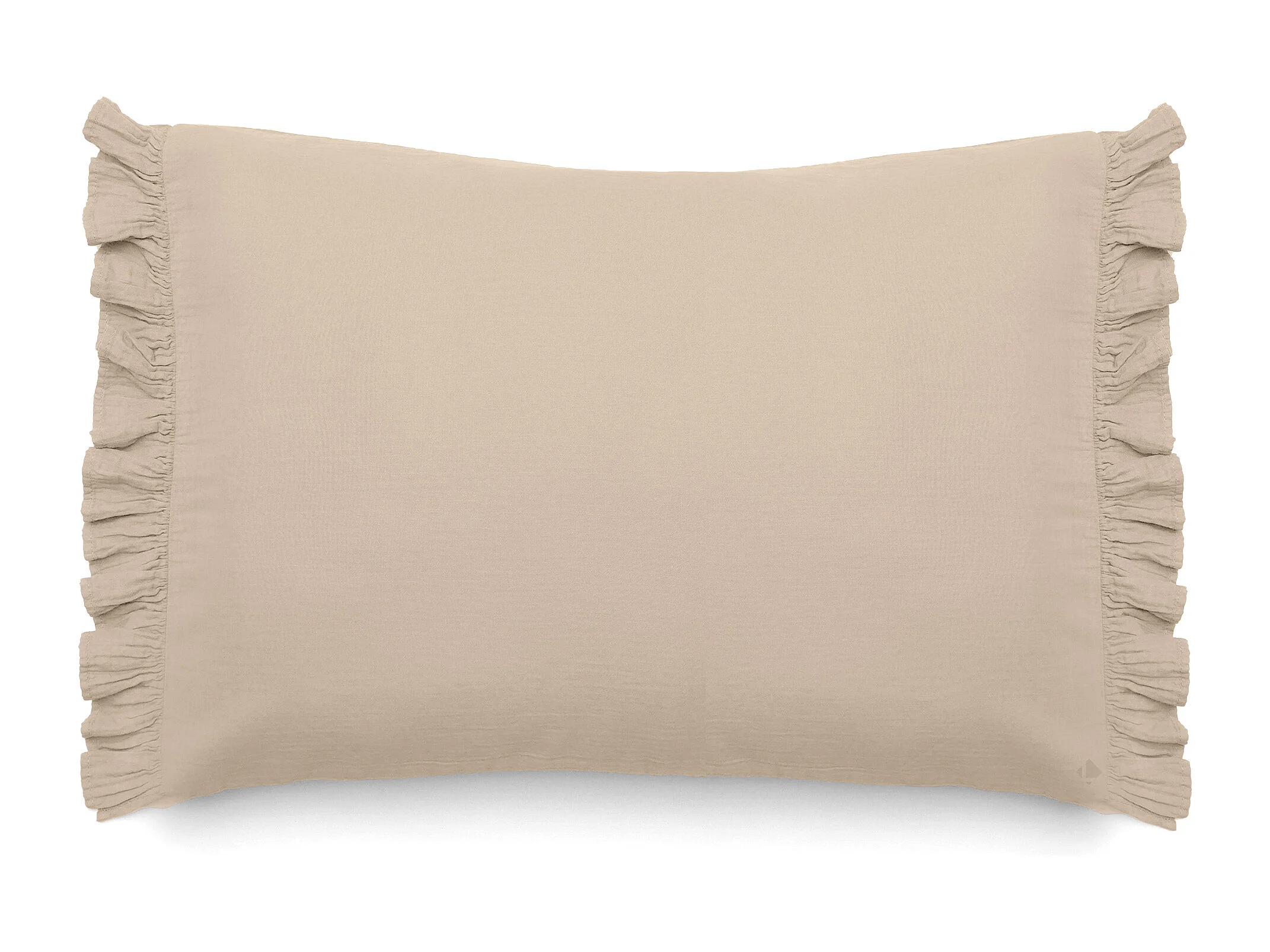 Housse de coussin en mousseline de coton volant central 40x60 cm cm ELZA beige ficelle