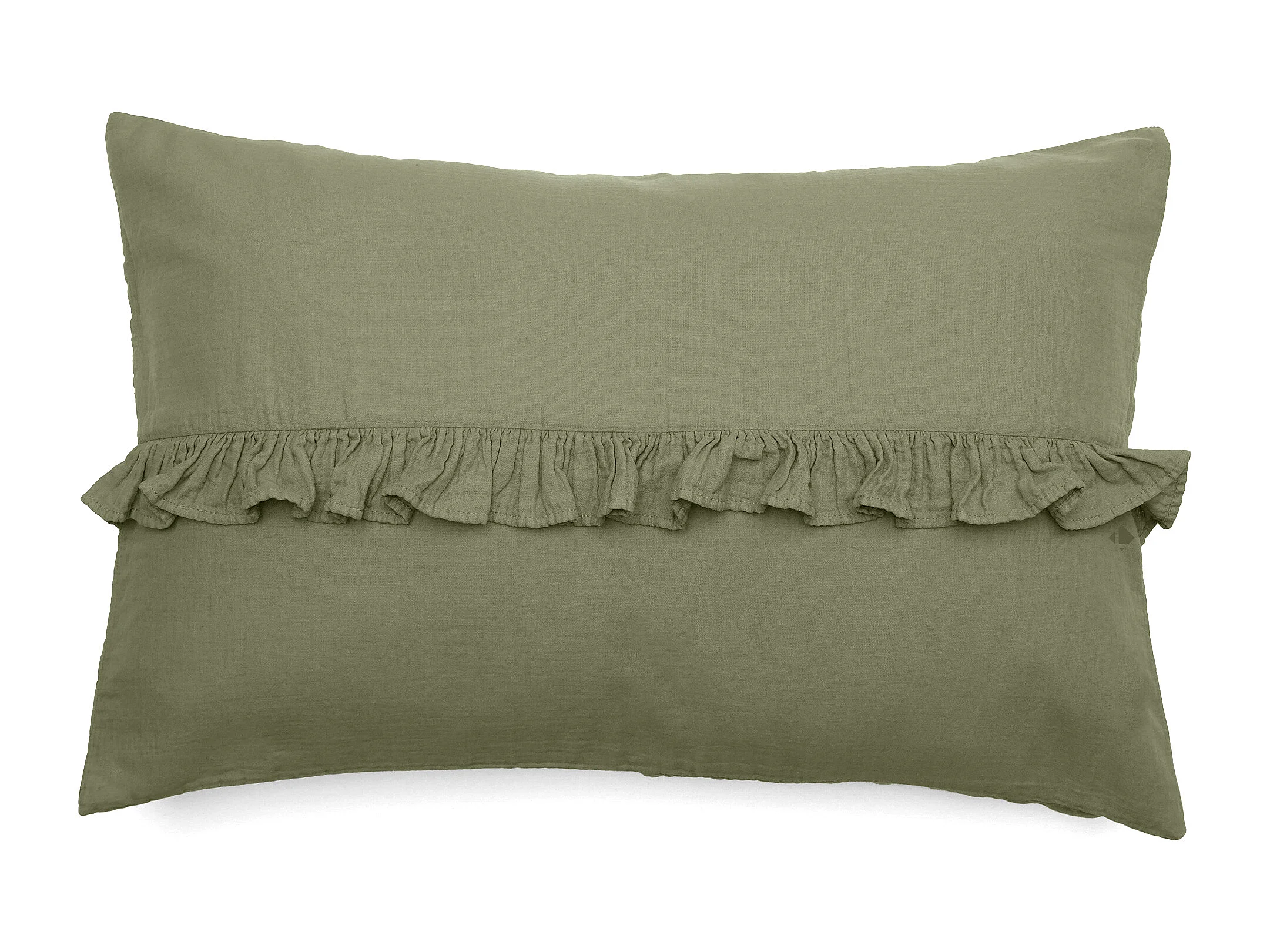 Housse de coussin en mousseline de coton volant central 40x60 cm cm ELZA vert mousse