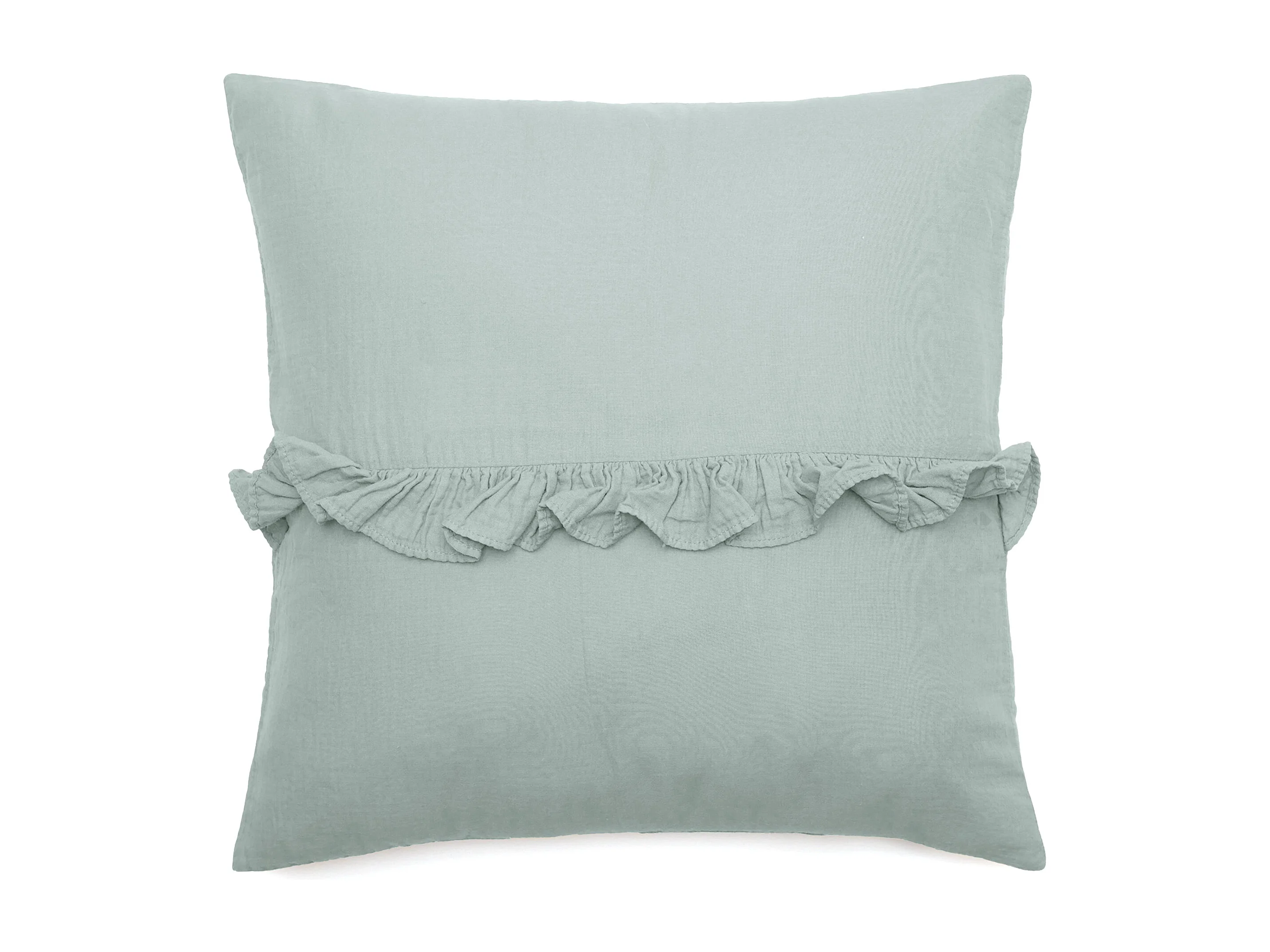 Housse de coussin en mousseline de coton volant central 45x45 cm cm ELZA gris lichen