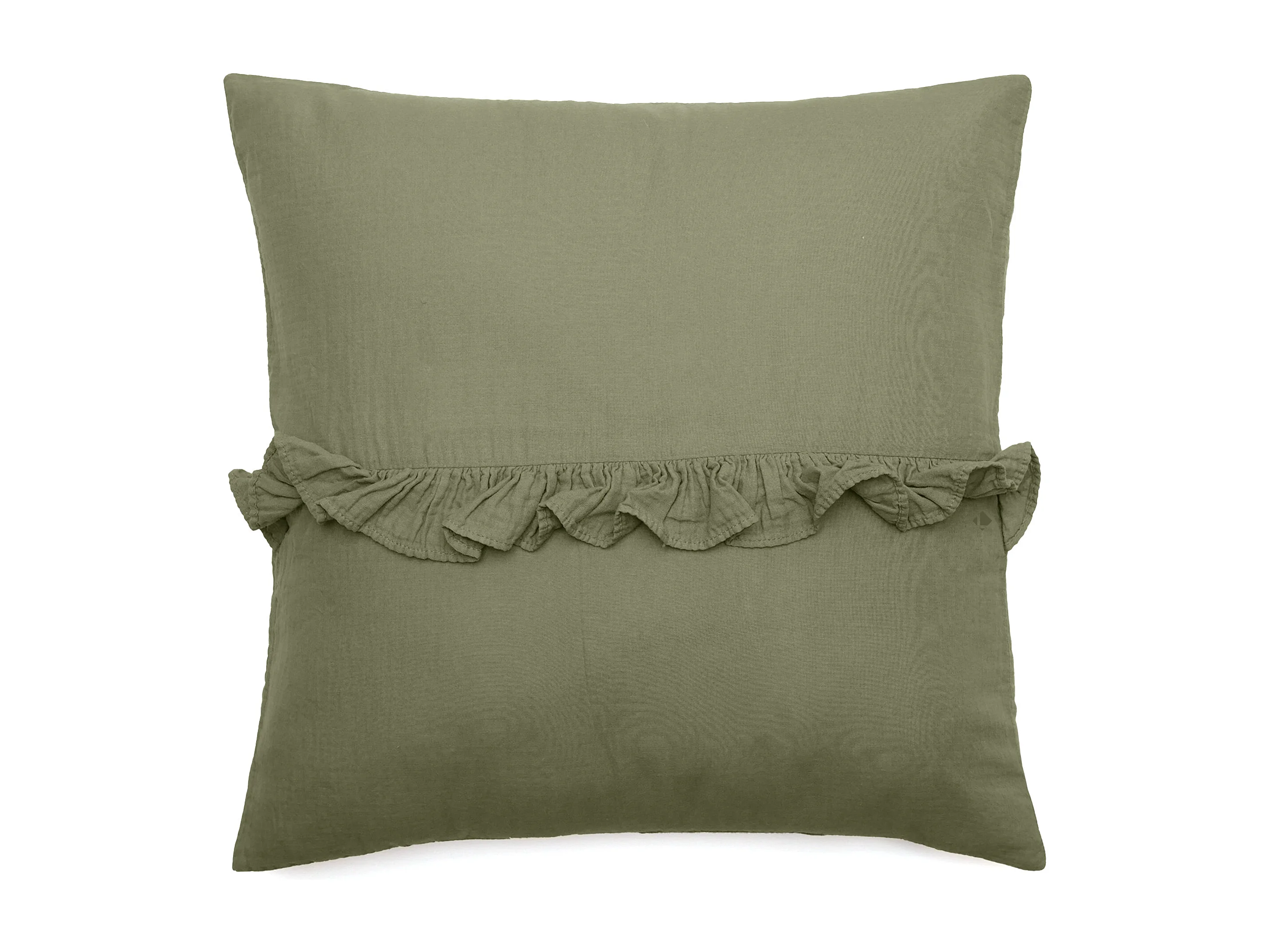 Housse de coussin en mousseline de coton volant central 45x45 cm cm ELZA vert mousse
