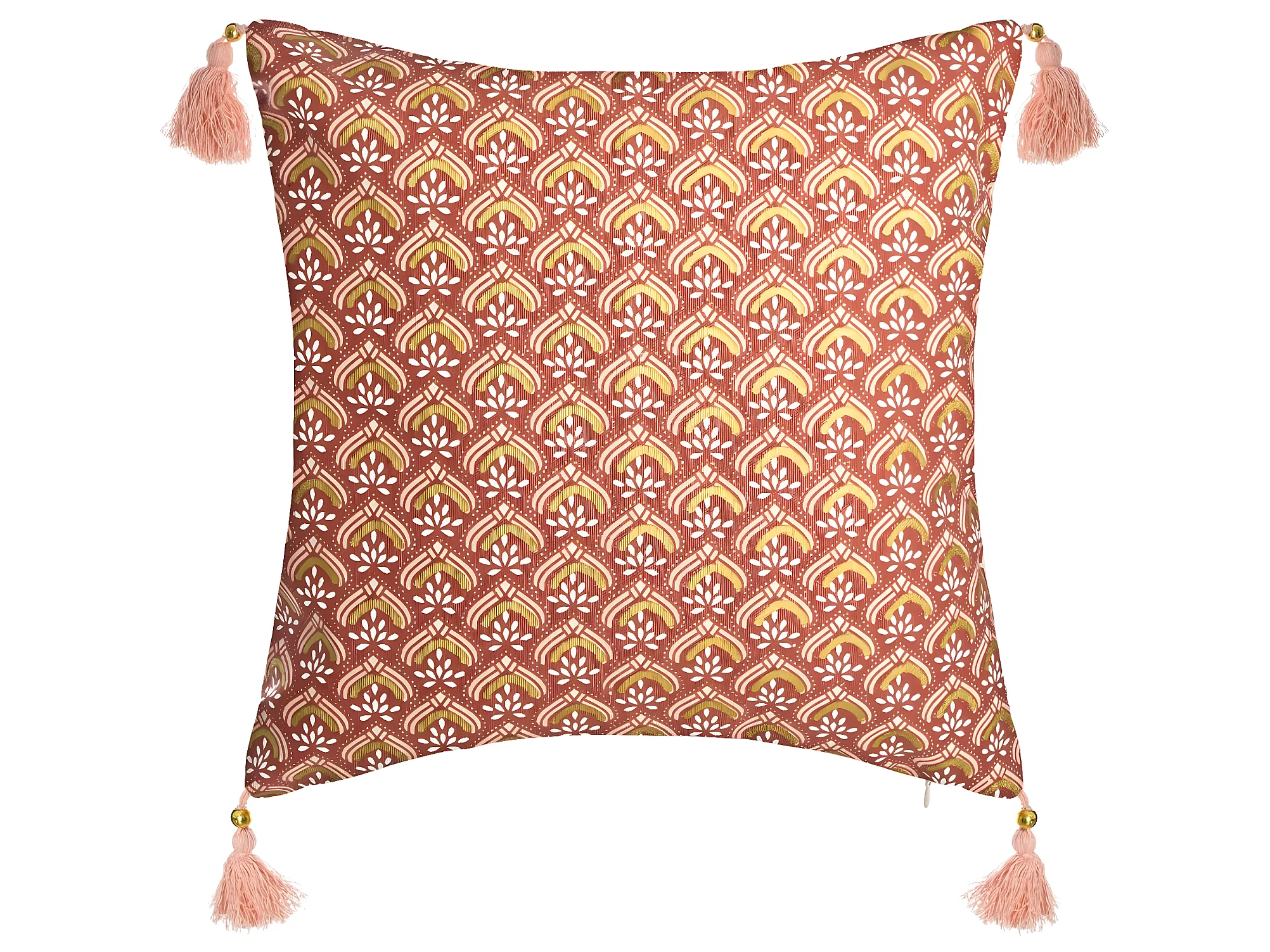 Housse de Coussin Hindou Or et Pompons 40 x 40 cm