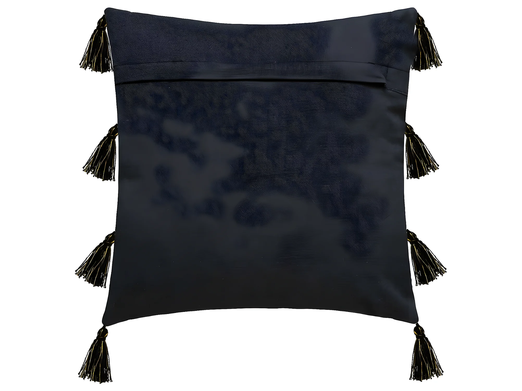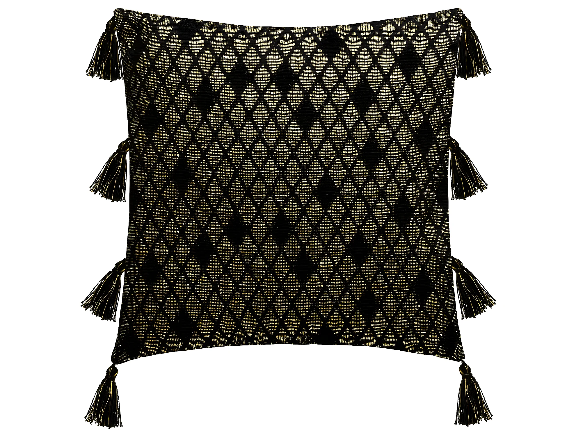 Housse de Coussin Noir & Or Brillant avec Pompons 40 x 40 cm