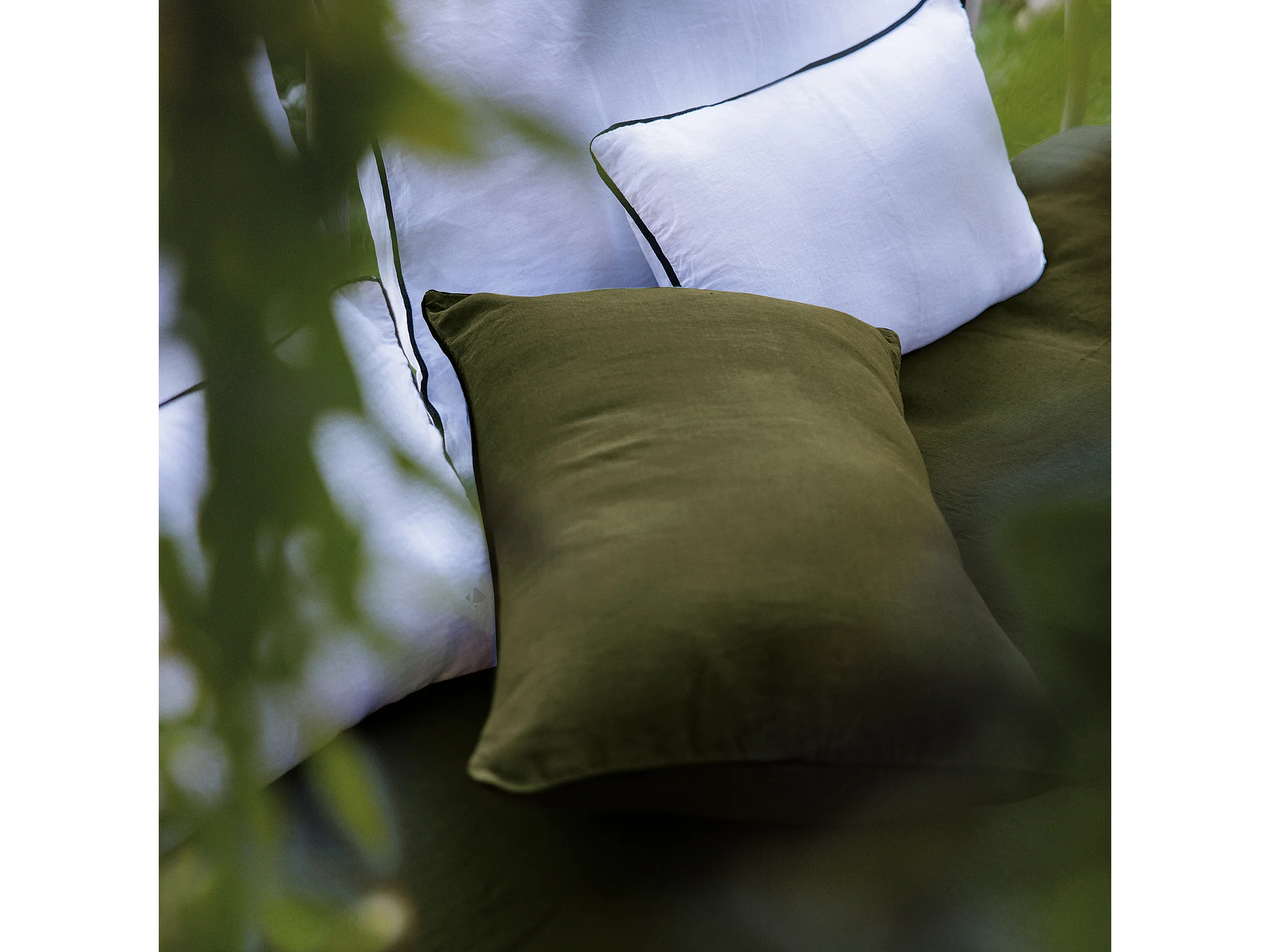 Housse de coussin PRELUDE 40x60 cm lin et coton lavé vert Kaki