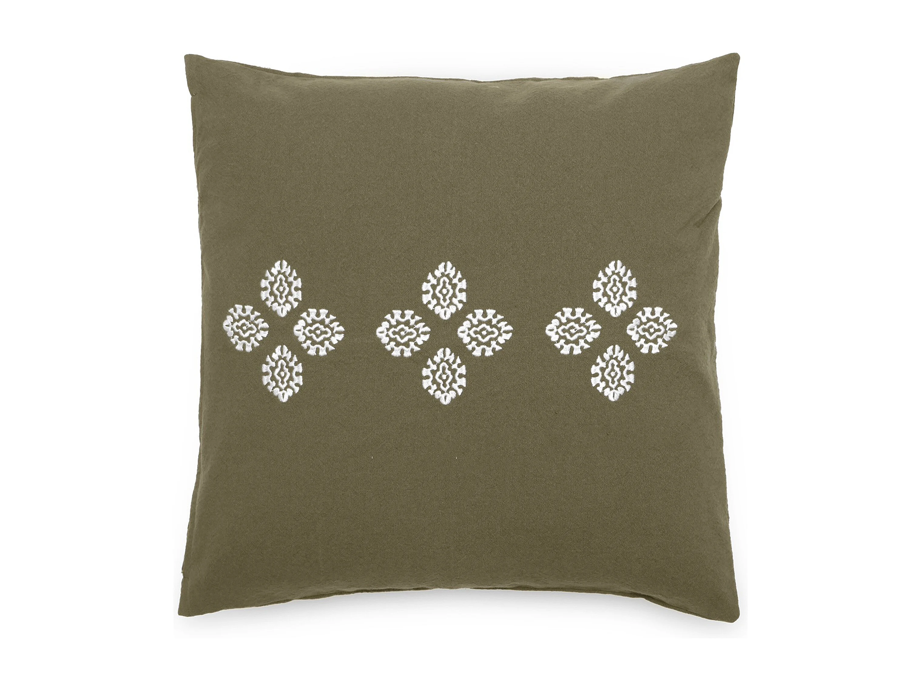 Housse de coussin pur coton teint lavé 45x45 cm BANDANAS vert mousse