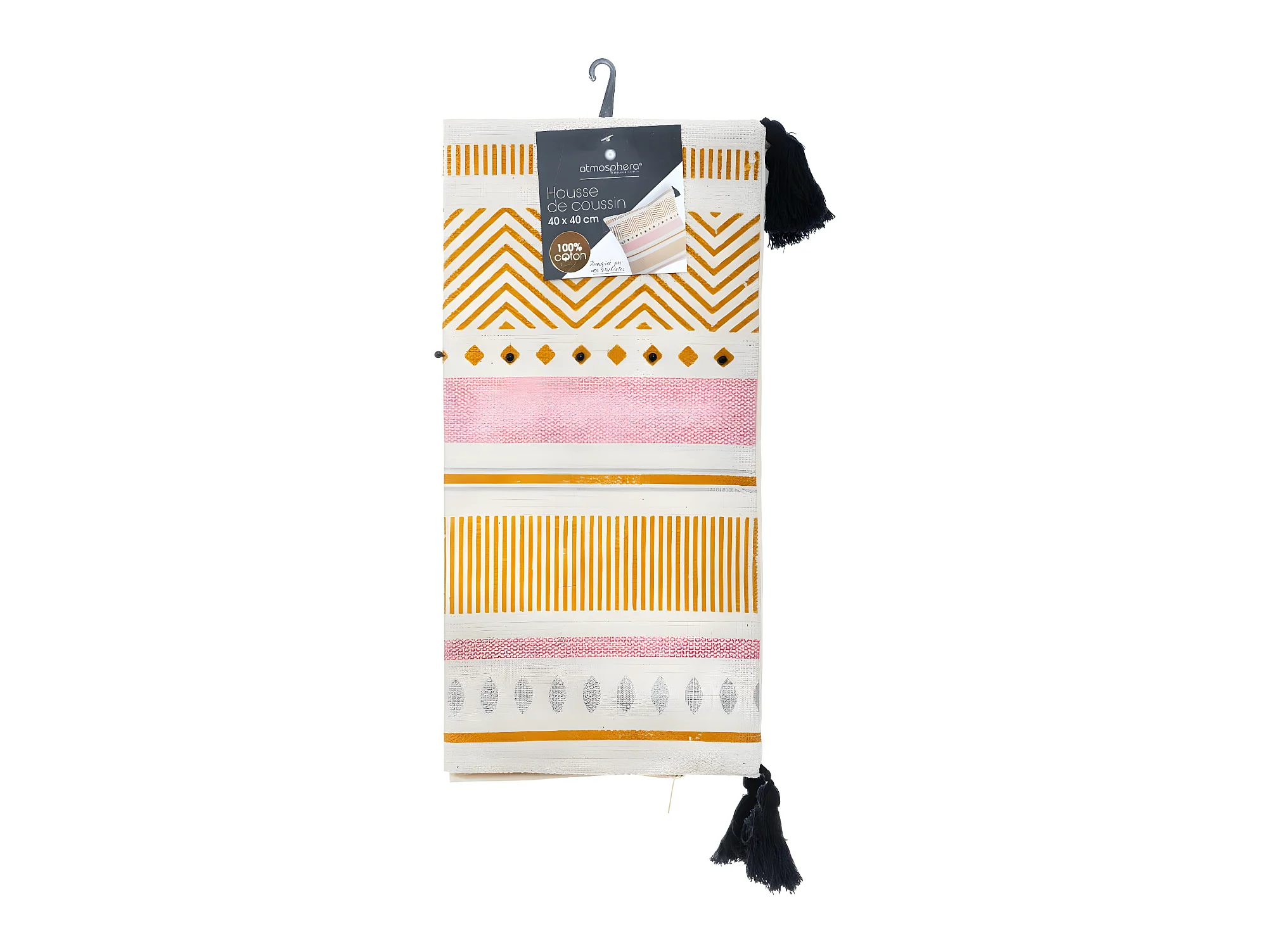 Housse de Coussin Rayures perles et Pompons 40 x 40 cm