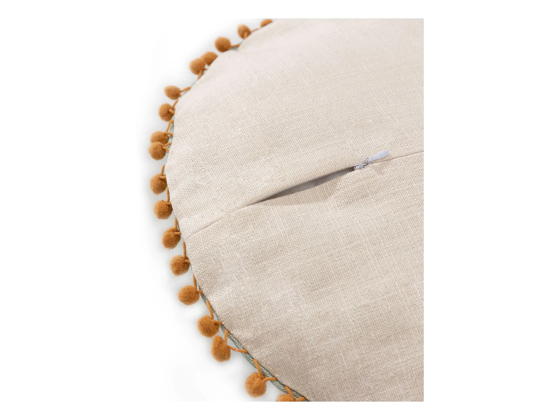 Ecru - Lin - Coussin de chaise rond réversible 38 cm