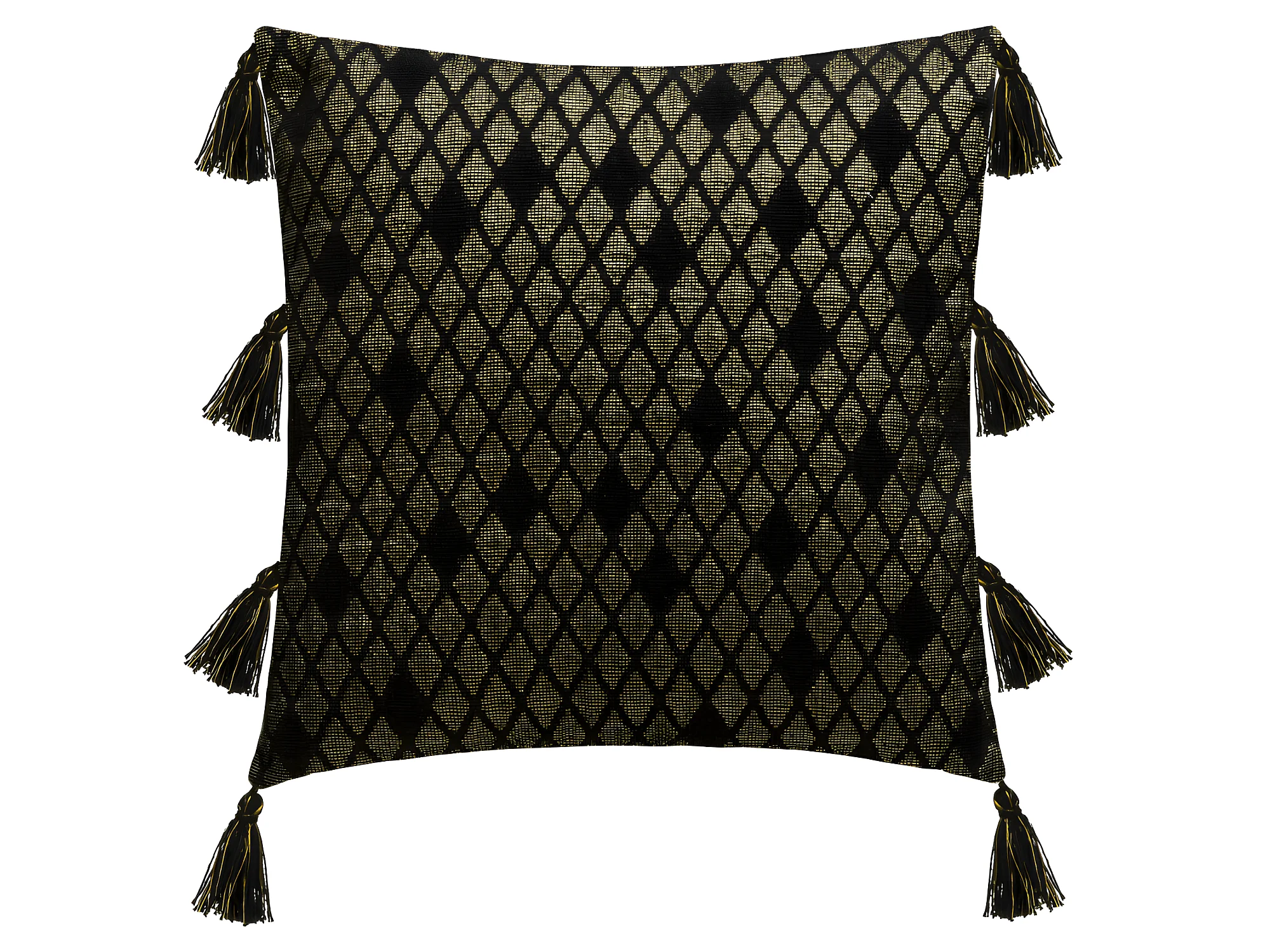 Housse de Coussin Noir & Or Brillant avec Pompons 40 x 40 cm